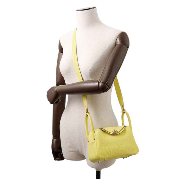 Hermes Hermès Lindy Mini Handbag, Lime, Taurillon Clemence Leather, U Stamp, 2-Way Shoulder Bag