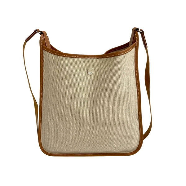 HERMES Vespa PM Toile H Buffle Leather Shoulder Bag in Ivory and Brown (20303)