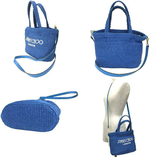 JIMMY CHOO BEACH TOTE E/W MINI JYN 25827494 Shoulder Bag in Sky and Latte Blue Raffia. Women\'s.