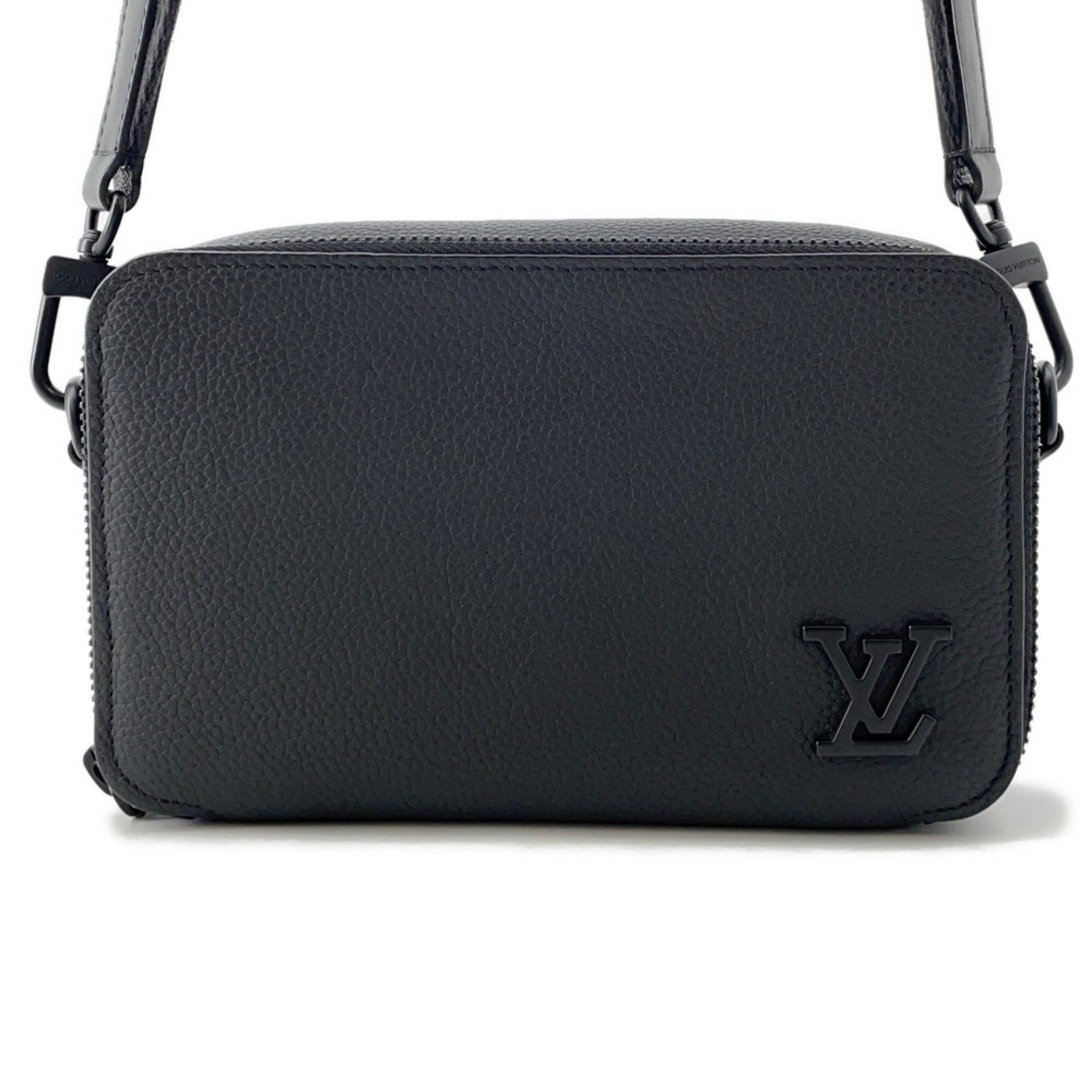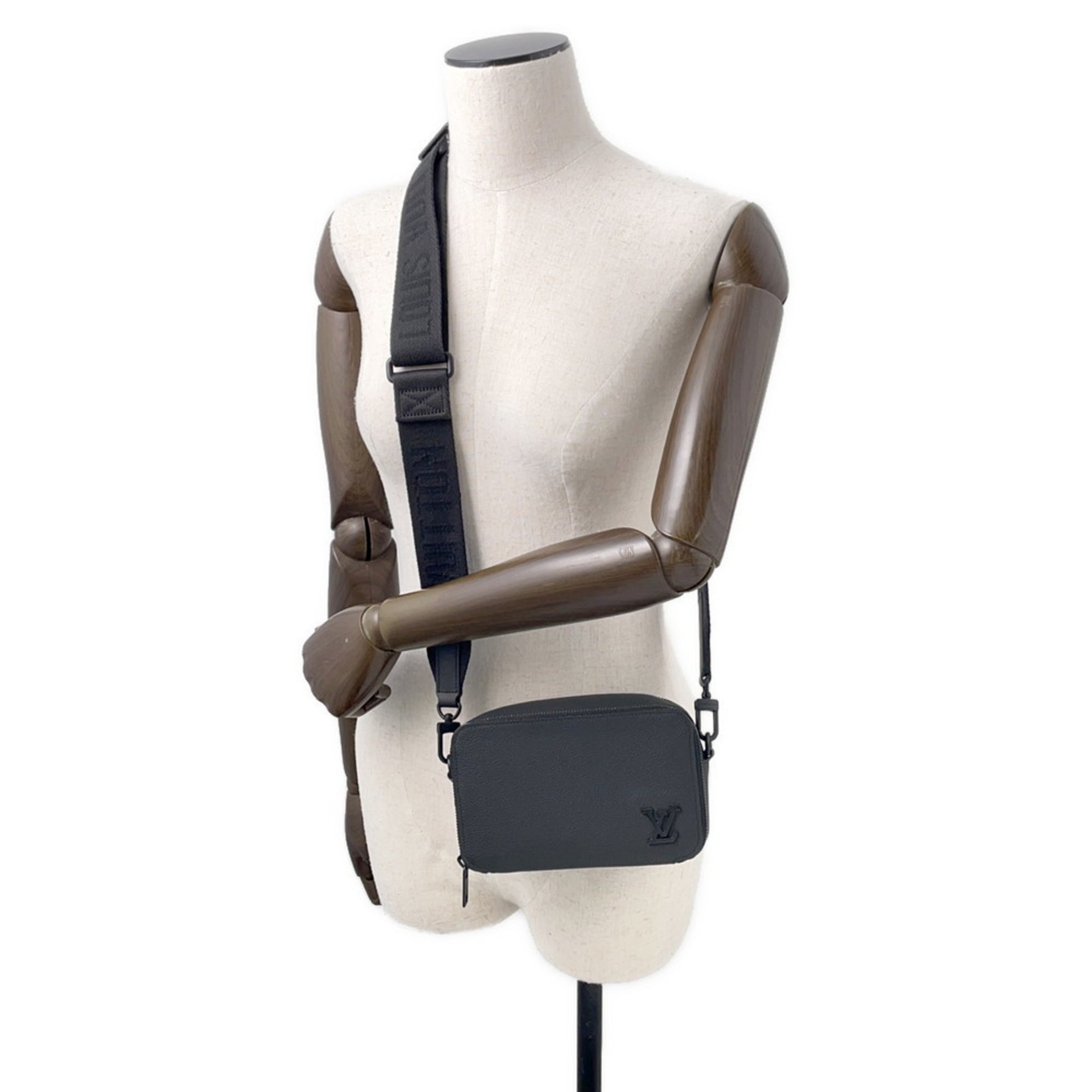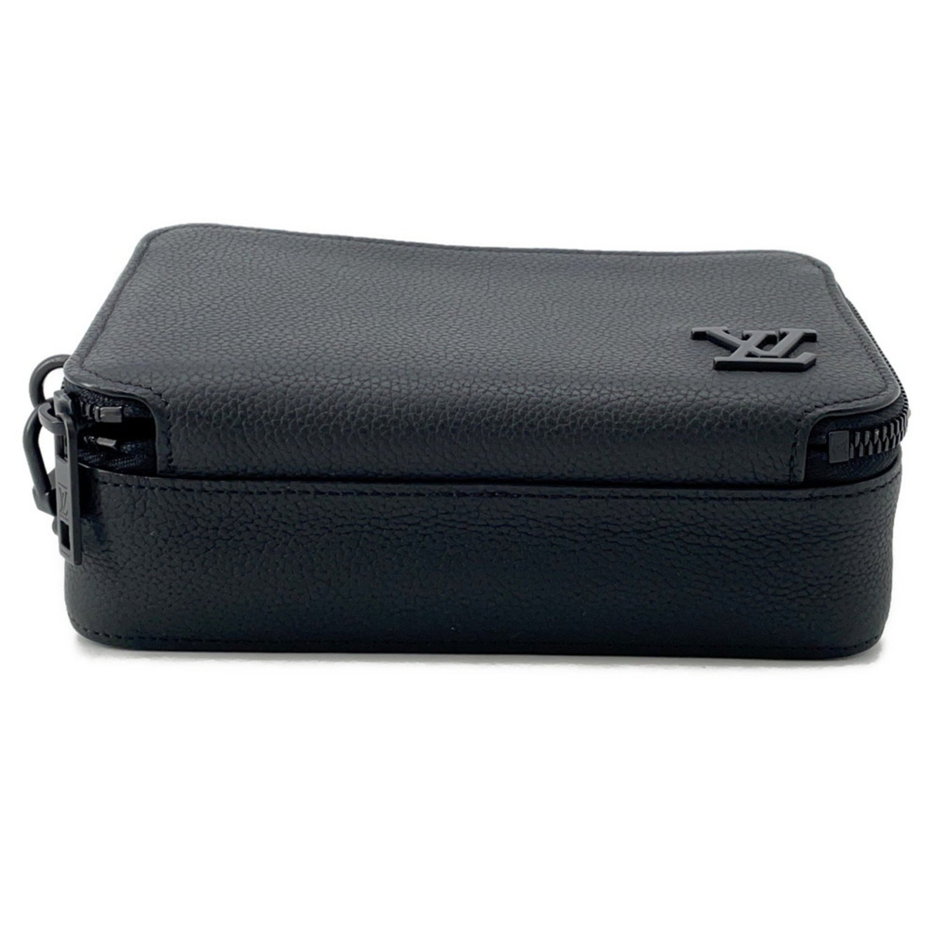 Louis Vuitton Shoulder Bag, Grained Calfskin Leather, Aerogram Alpha Wearable Wallet, M59161, Black