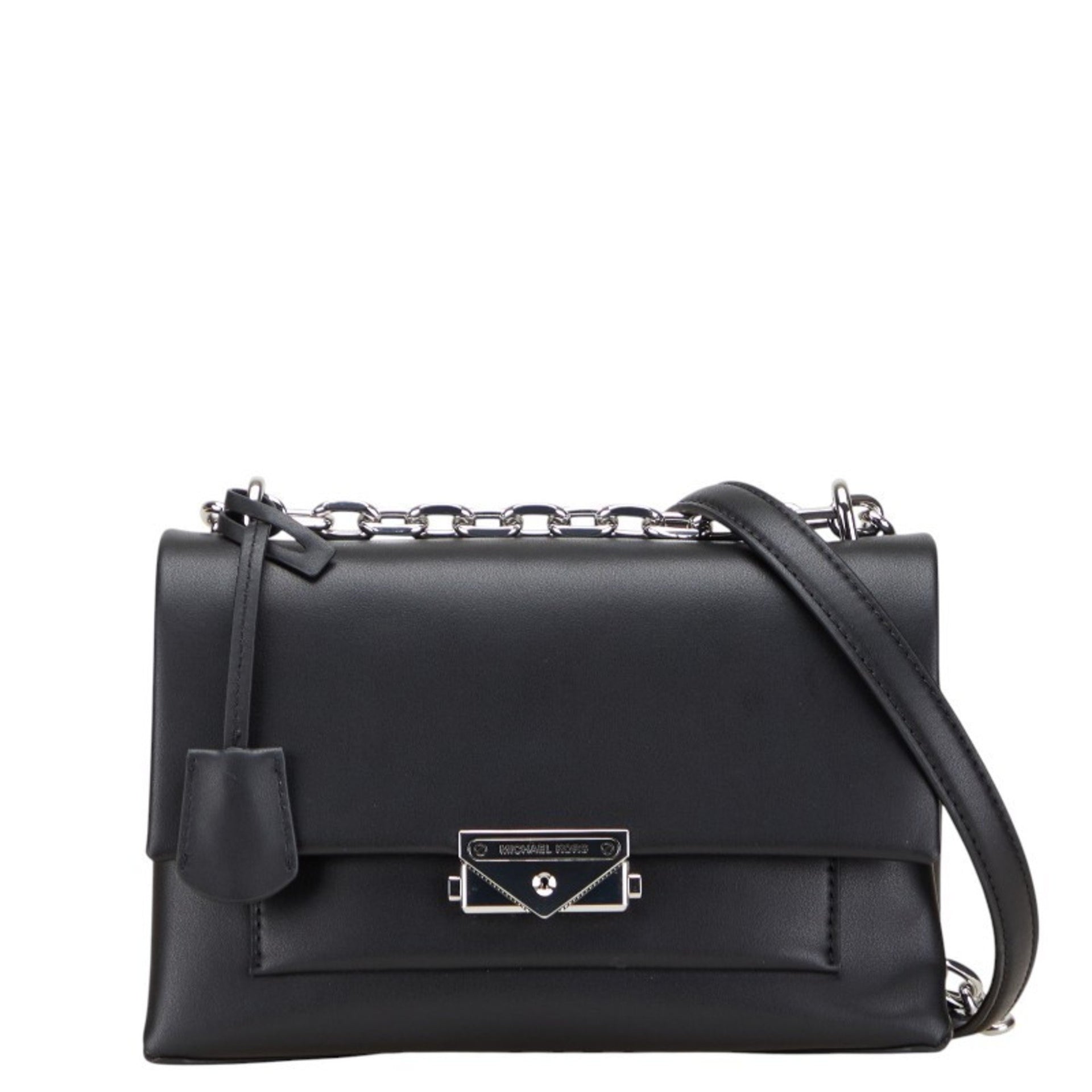 Michael Kors logo chain shoulder bag in black leather for women.