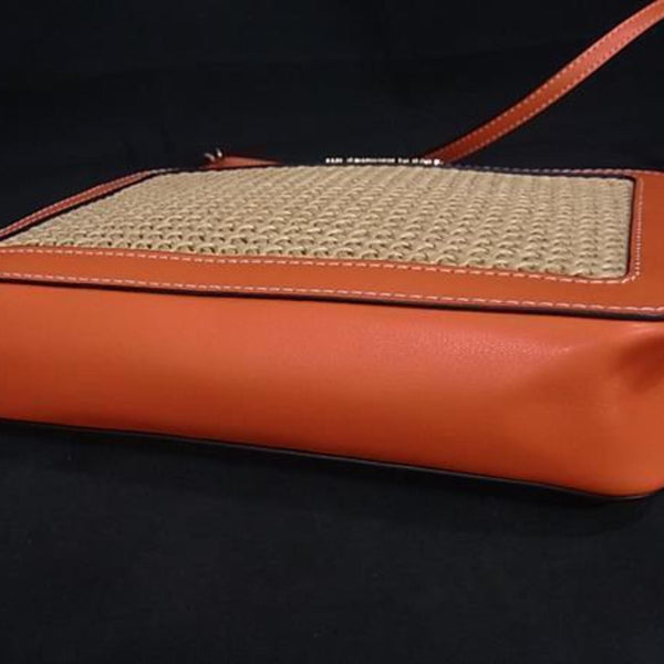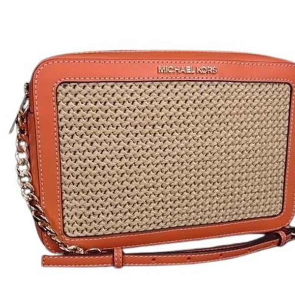 MICHAEL KORS Michael Kors Shoulder Bag - Orange Beige Straw x Leather Women\'s Chain