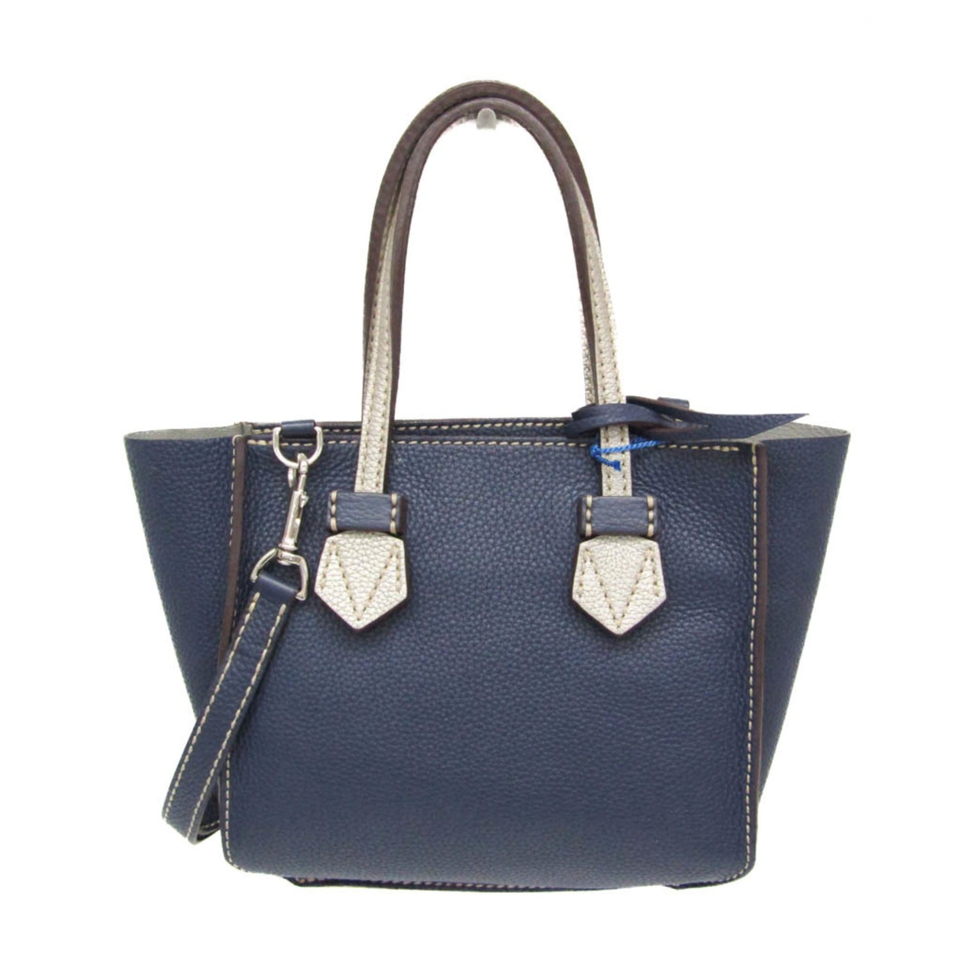 Moreau BREGANCON Women\'s Leather Handbag,Shoulder Bag Navy,Silver