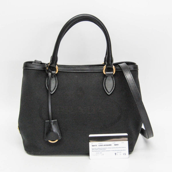 Prada LOGO JACQUARD 1BA172 Women\'s Leather,Jacquard Handbag,Shoulder Bag Black