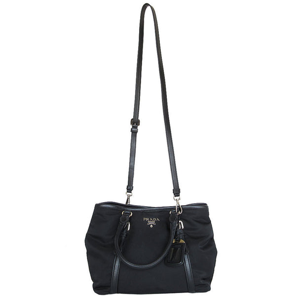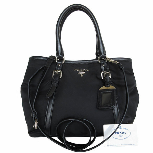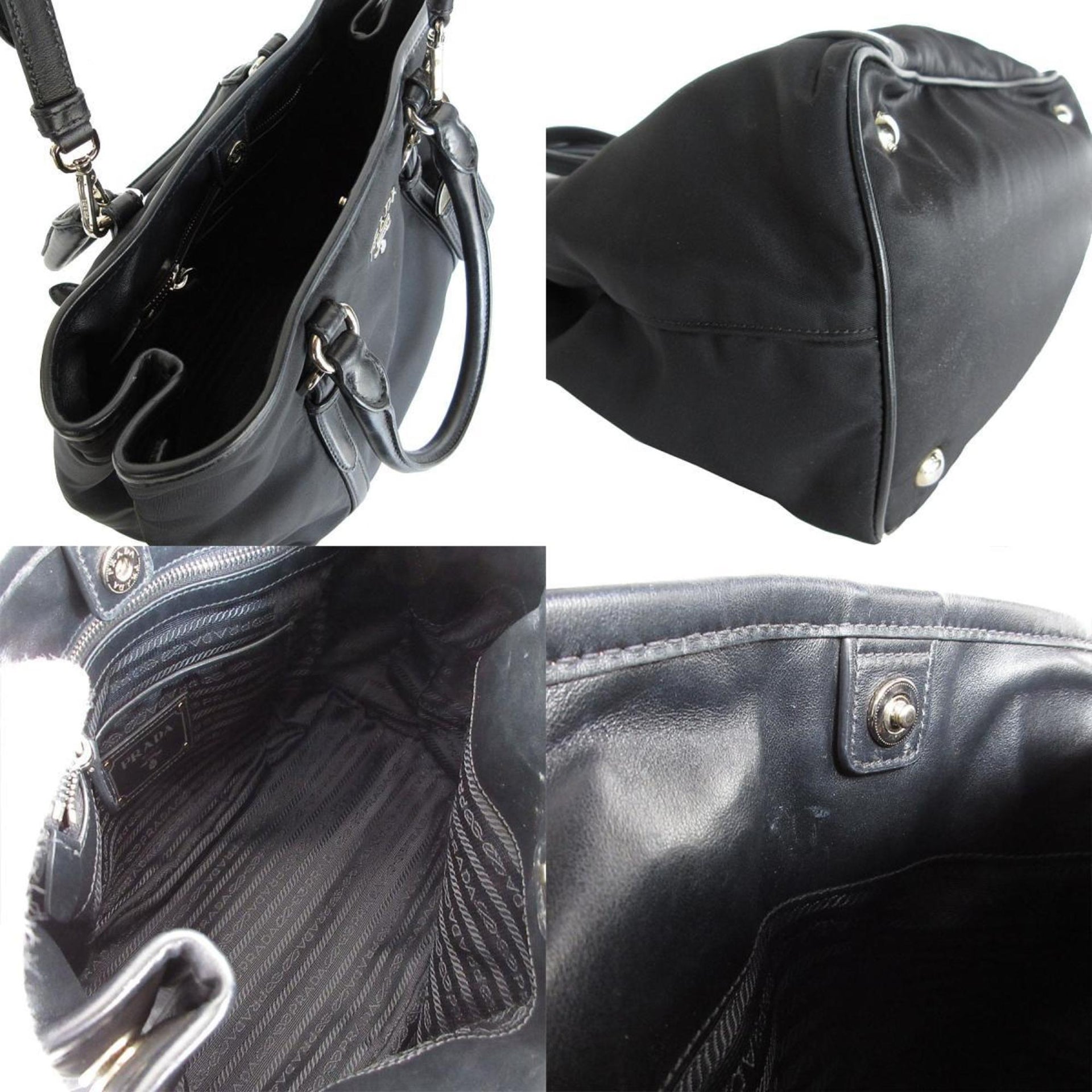 Prada PRADA handbag shoulder bag nylon leather black silver women\'s s0667k