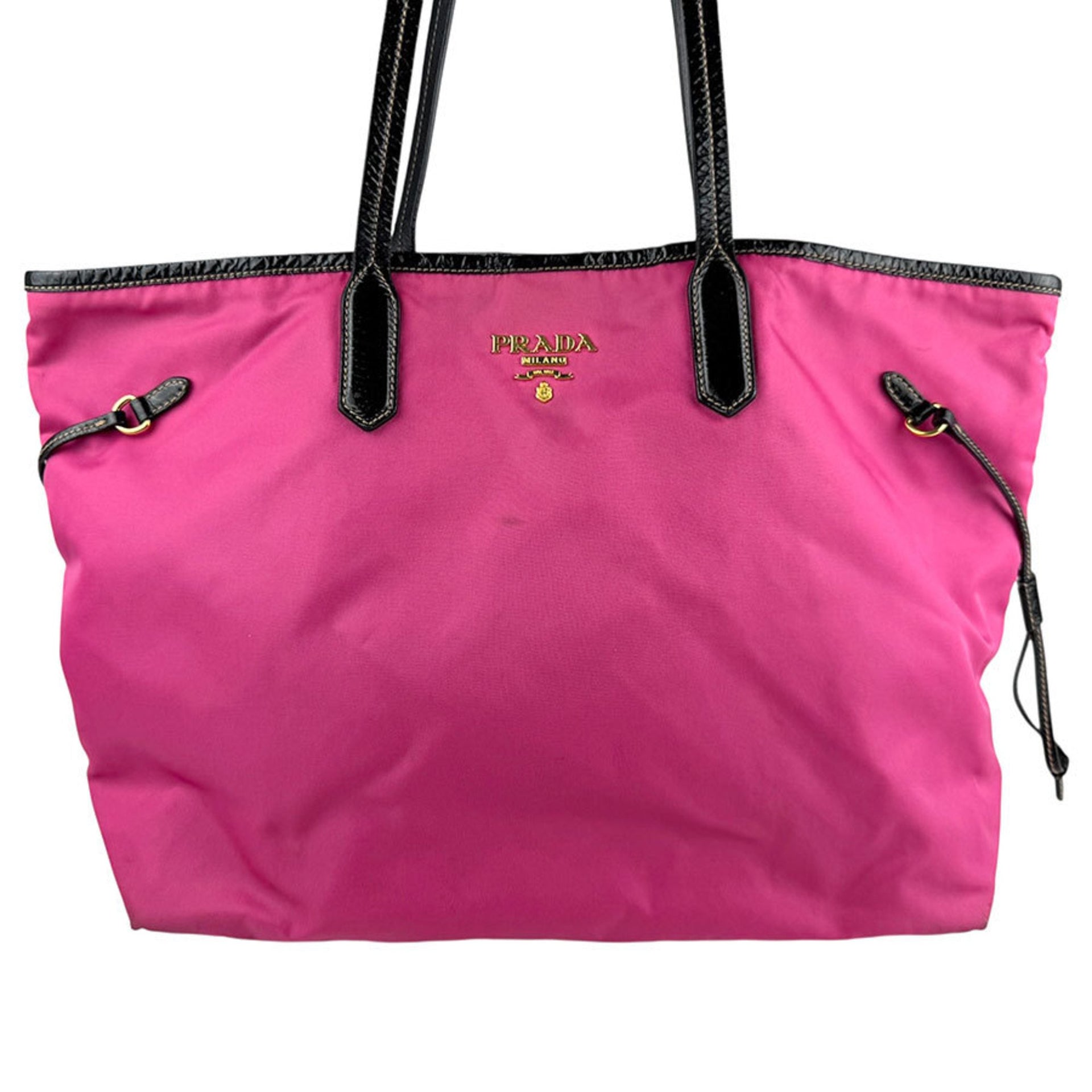 Prada PRADA Shoulder Bag Nylon Enamel Pink x Black Women\'s z6303