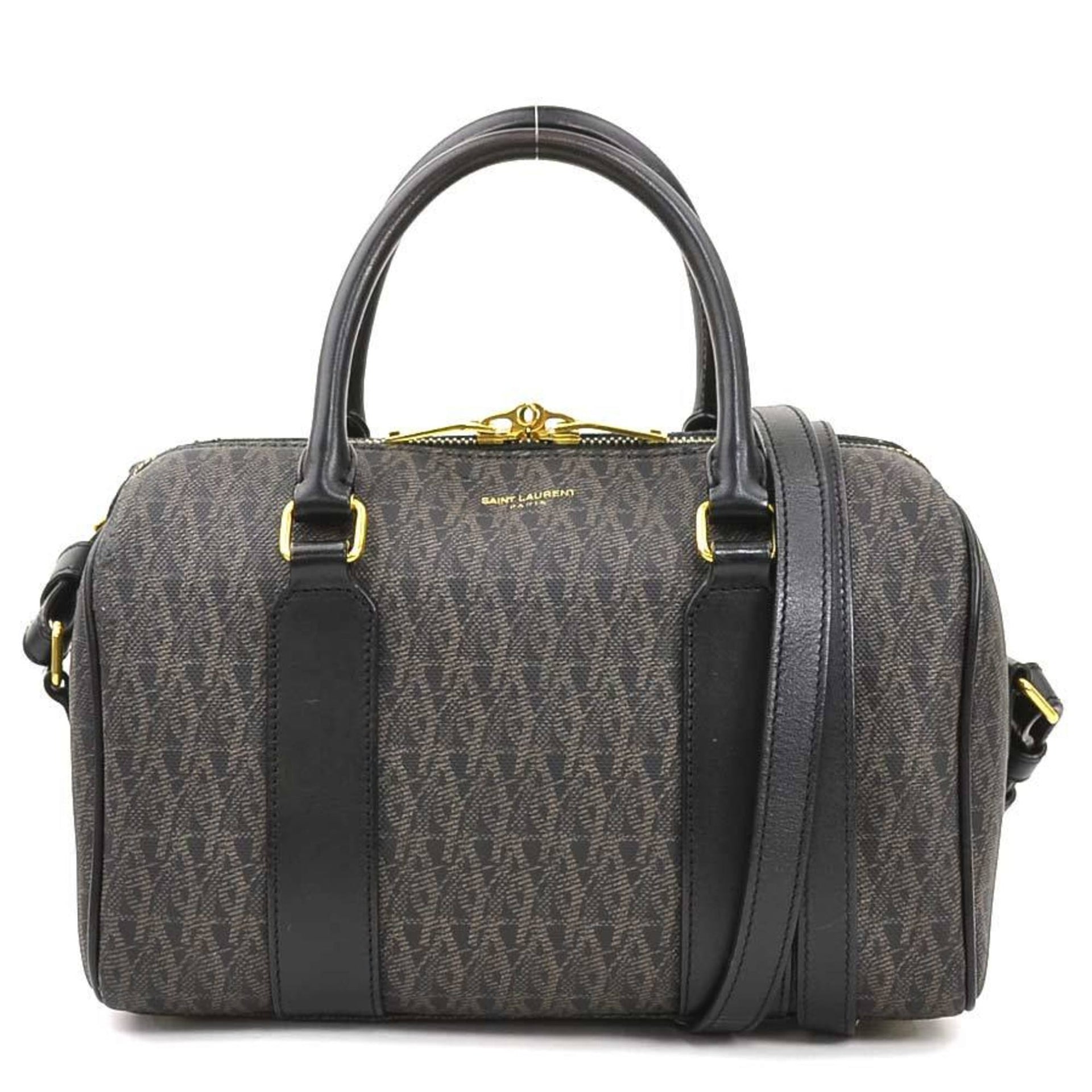 Saint Laurent Baby Duffle Handbag/Shoulder Bag in Coated Canvas, Black and Brown, Women\'s, 342102, r10696a
