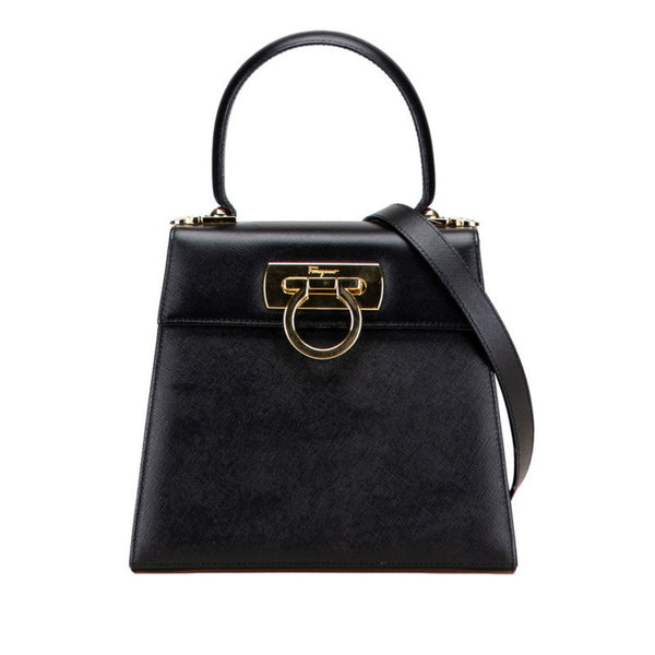 Salvatore Ferragamo Gancini handbag/shoulder bag, 2-way, black leather, women\'s.