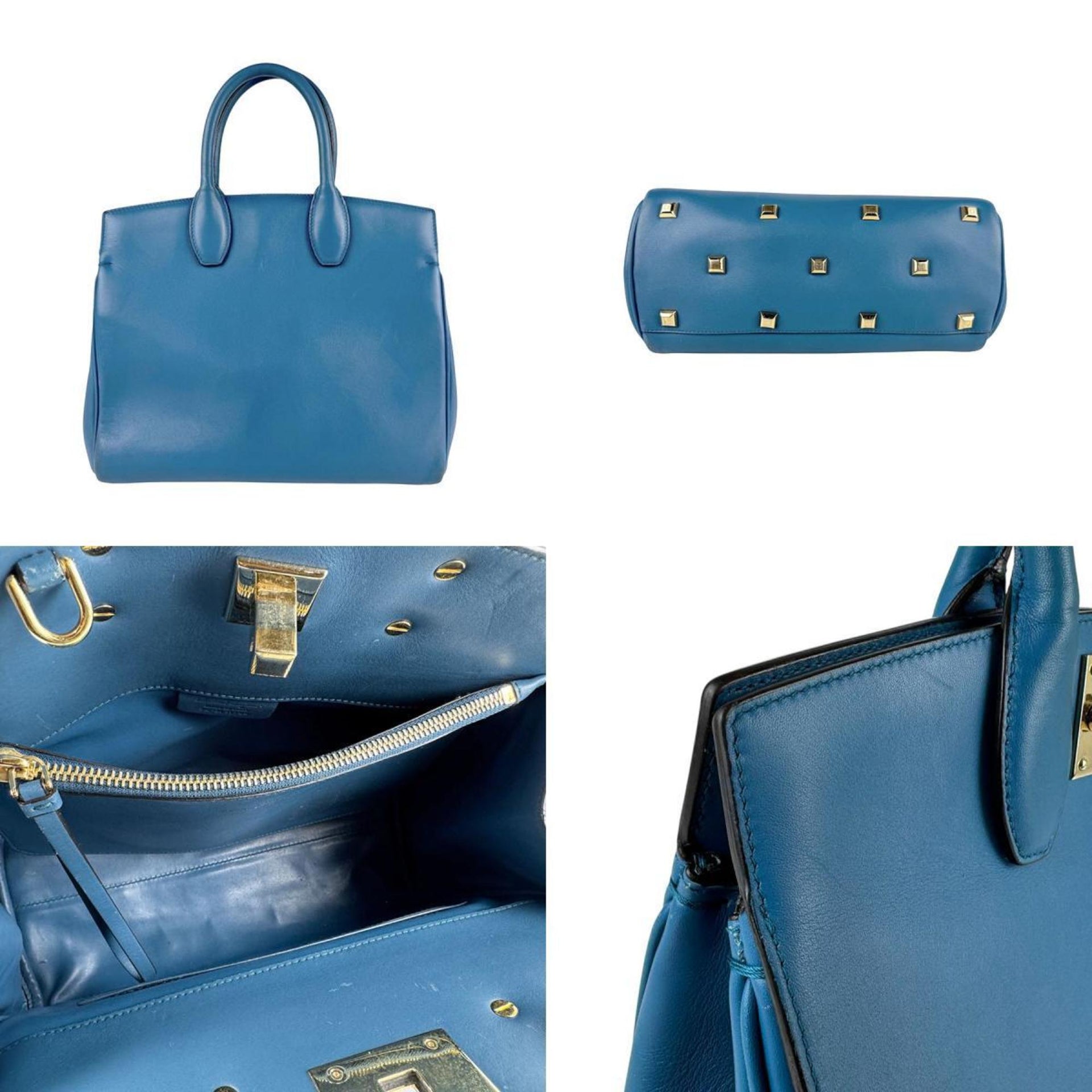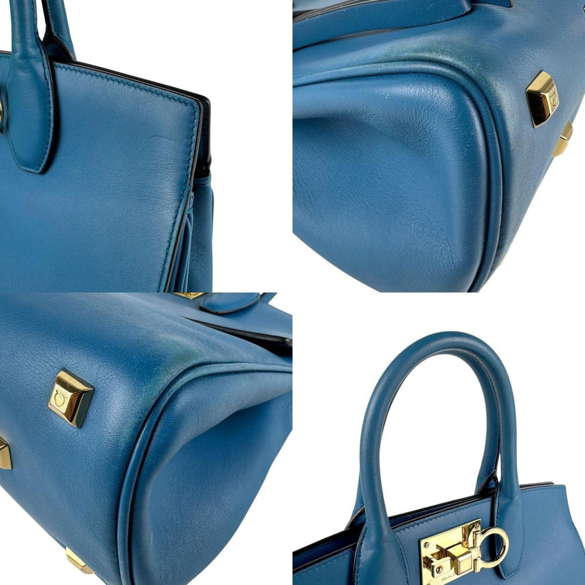 Salvatore Ferragamo handbag/shoulder bag in Gancini leather blue and gold, women\'s z6287