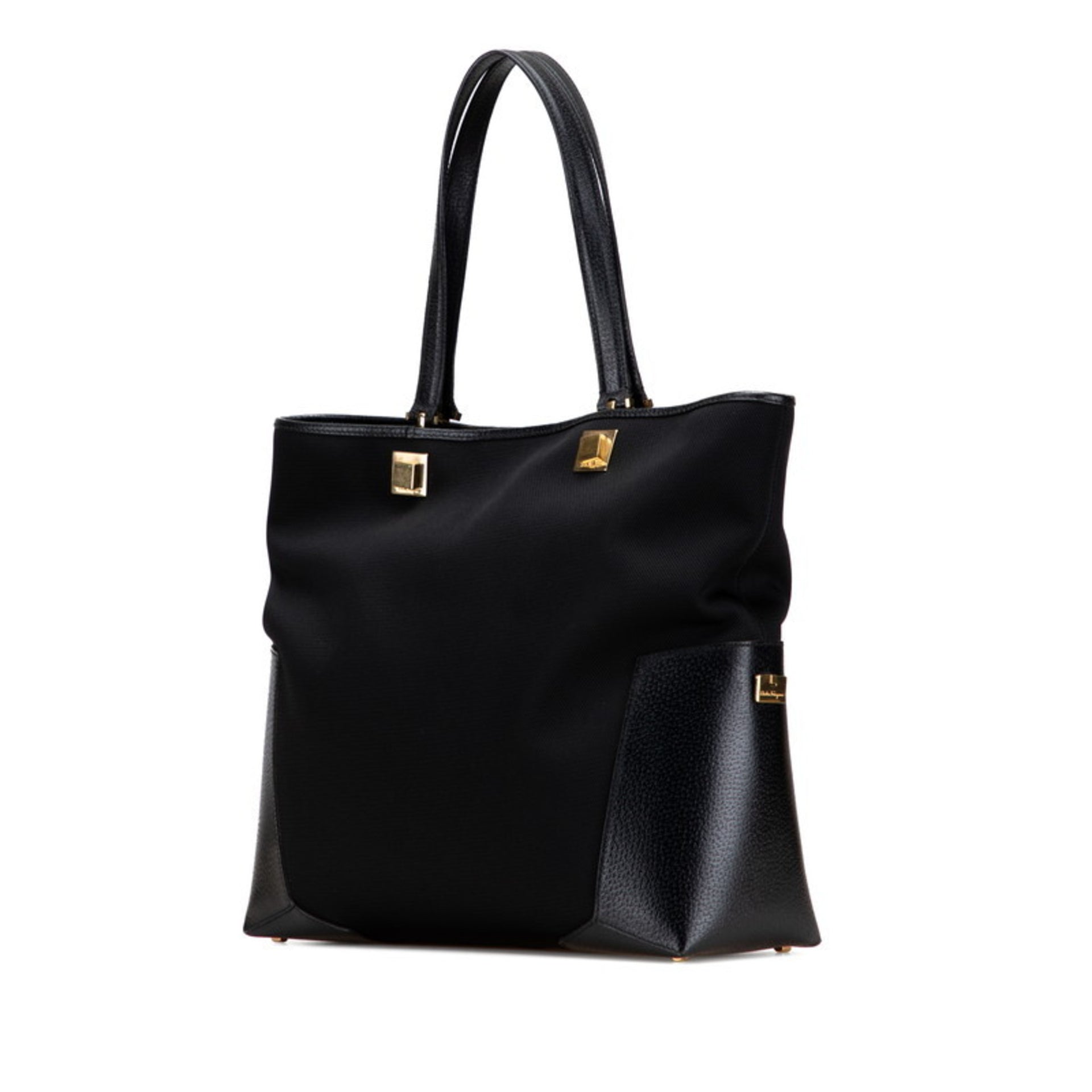 Salvatore Ferragamo Shoulder Bag Tote AU-21 1896 Black Leather Nylon Canvas Women\'s