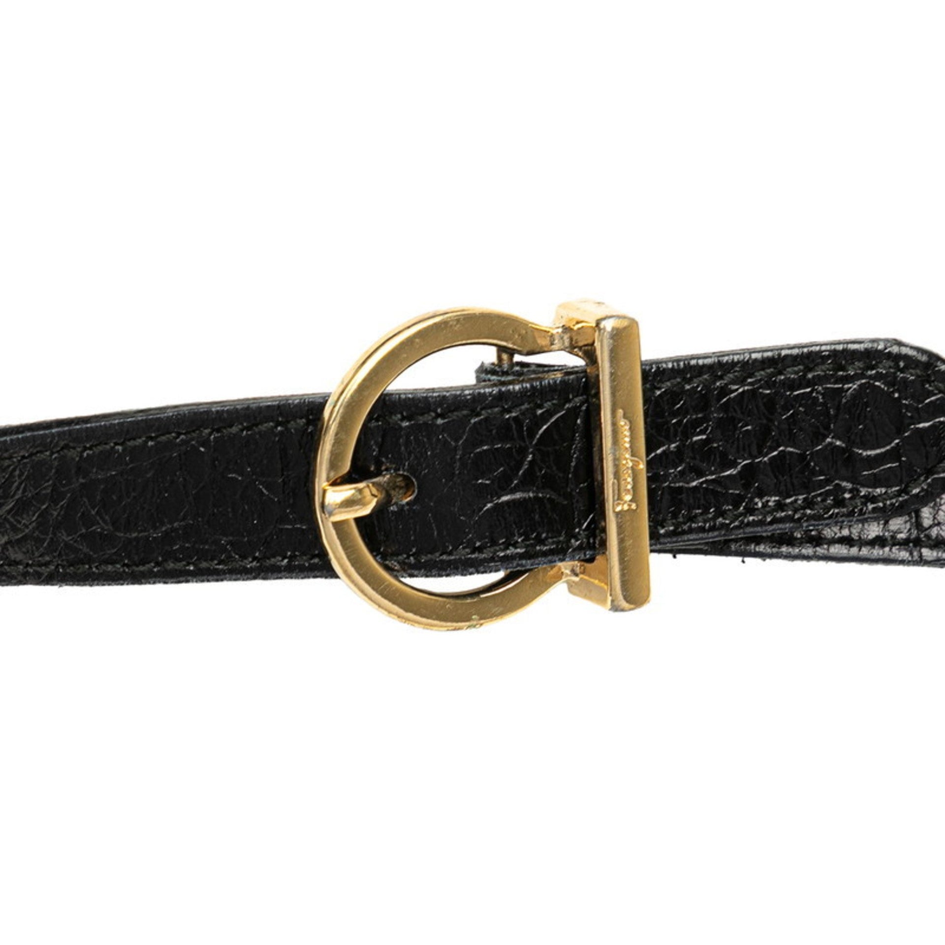 Salvatore Ferragamo Vara Crocodile Embossed Crossbody Shoulder Bag AF-21 6677 Black Leather Women\'s