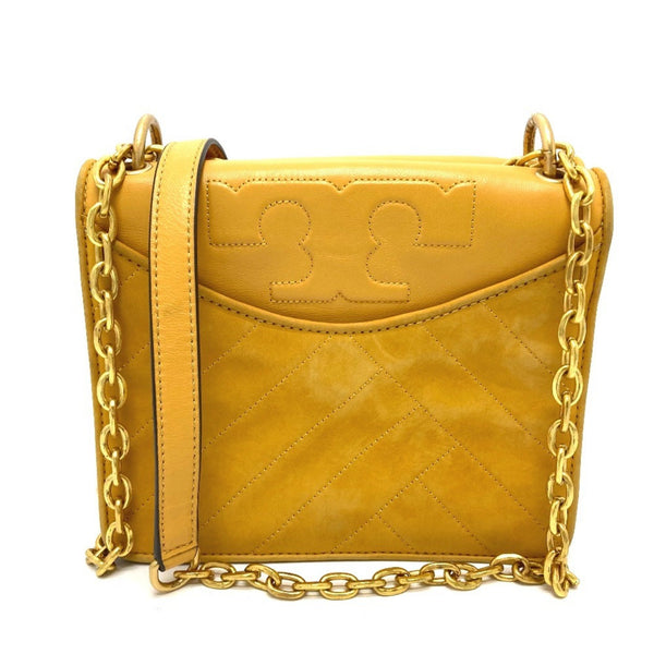 Tory Burch Logo Chain Pochette Shoulder Bag in Lambskin Leather, Yellow