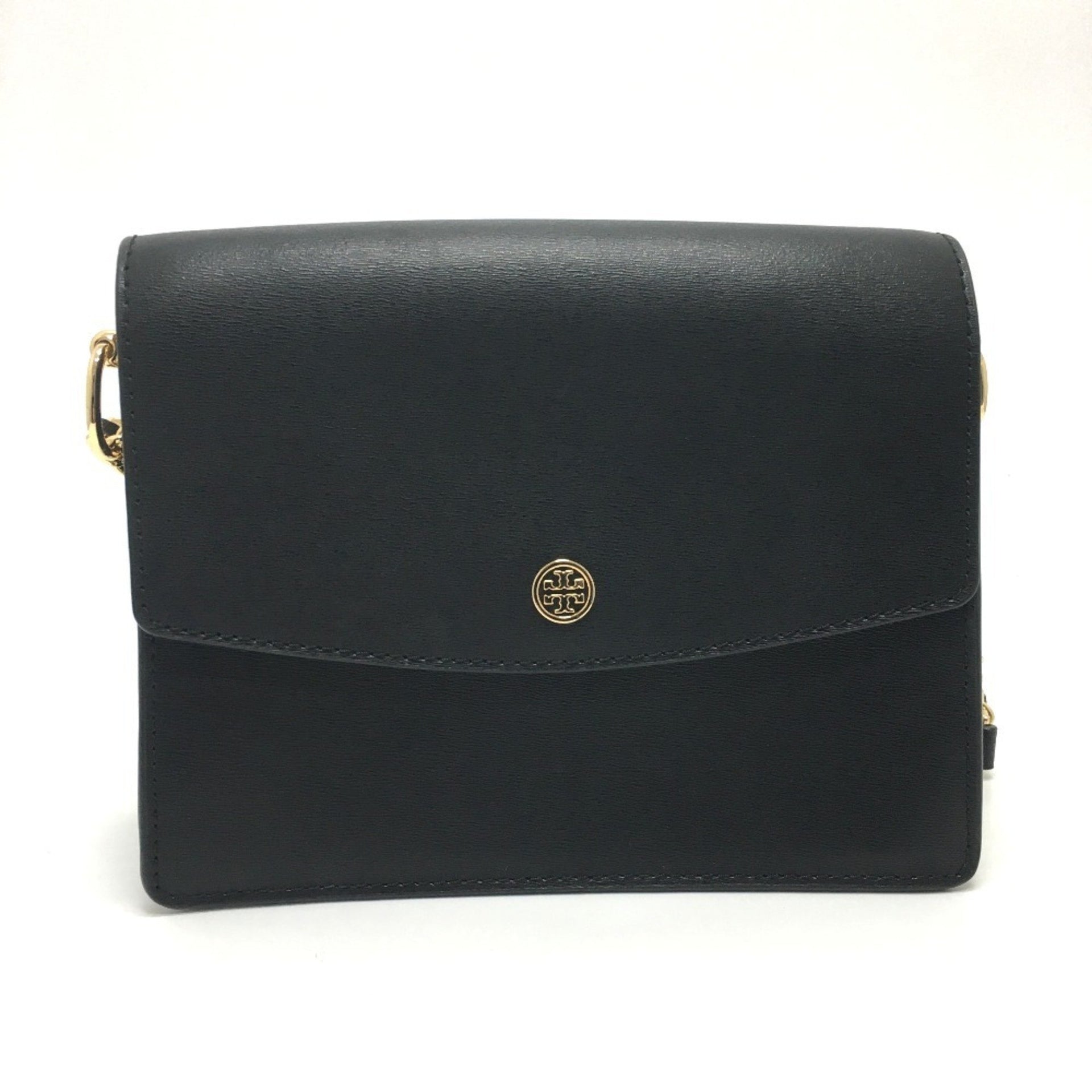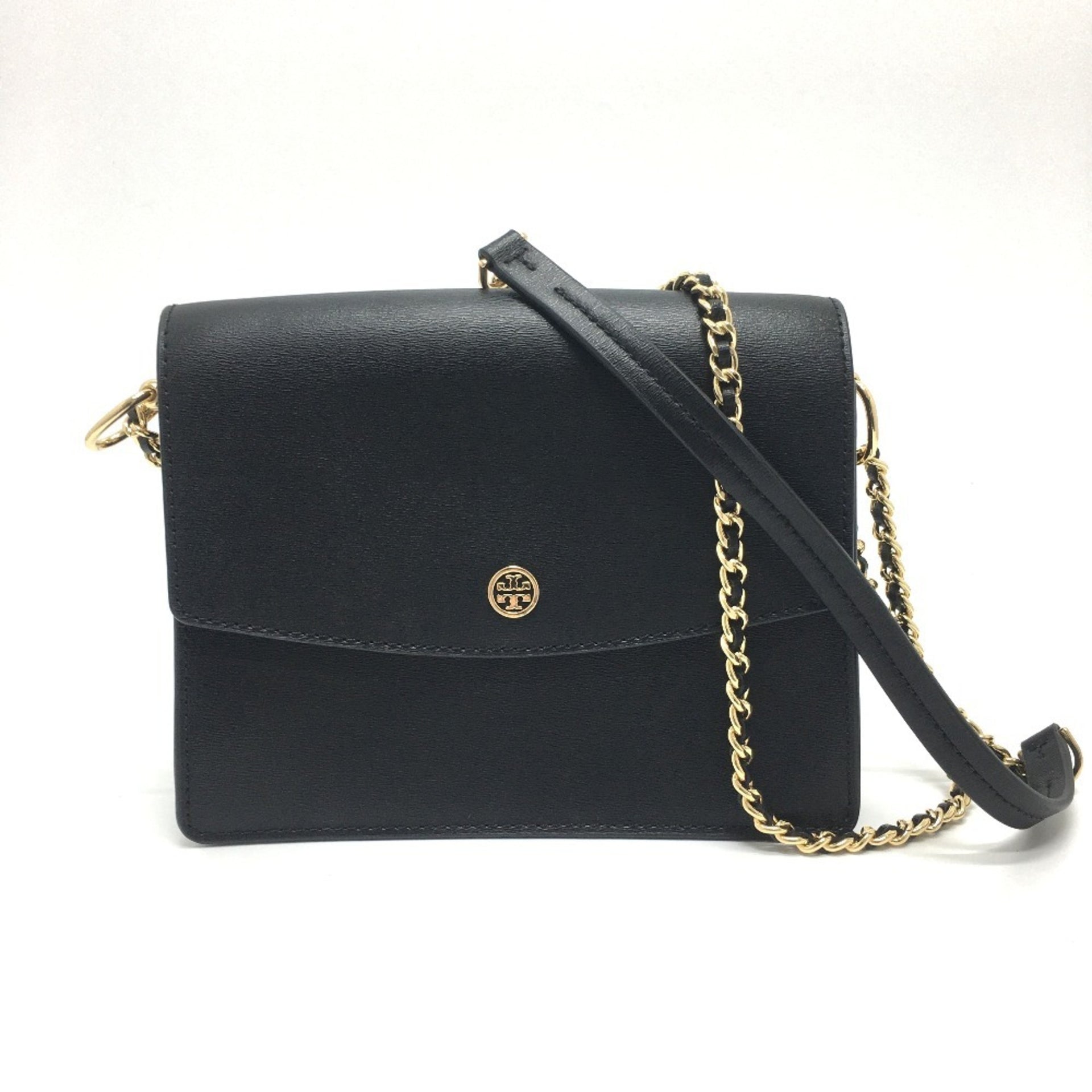 Tory Burch Logo Chain Shoulder Bag in Black Leather