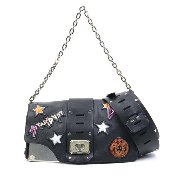 Versace 2-Way Shoulder Bag in Black, Multicolored Leather, and Silver (e60735a)