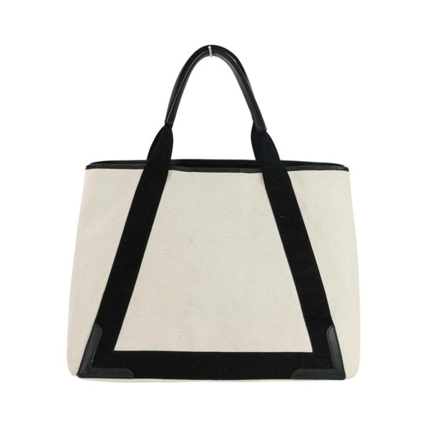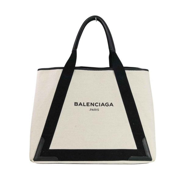BALENCIAGA Navy Cabas M Canvas Tote Bag 339936 Ivory Black Women\'s