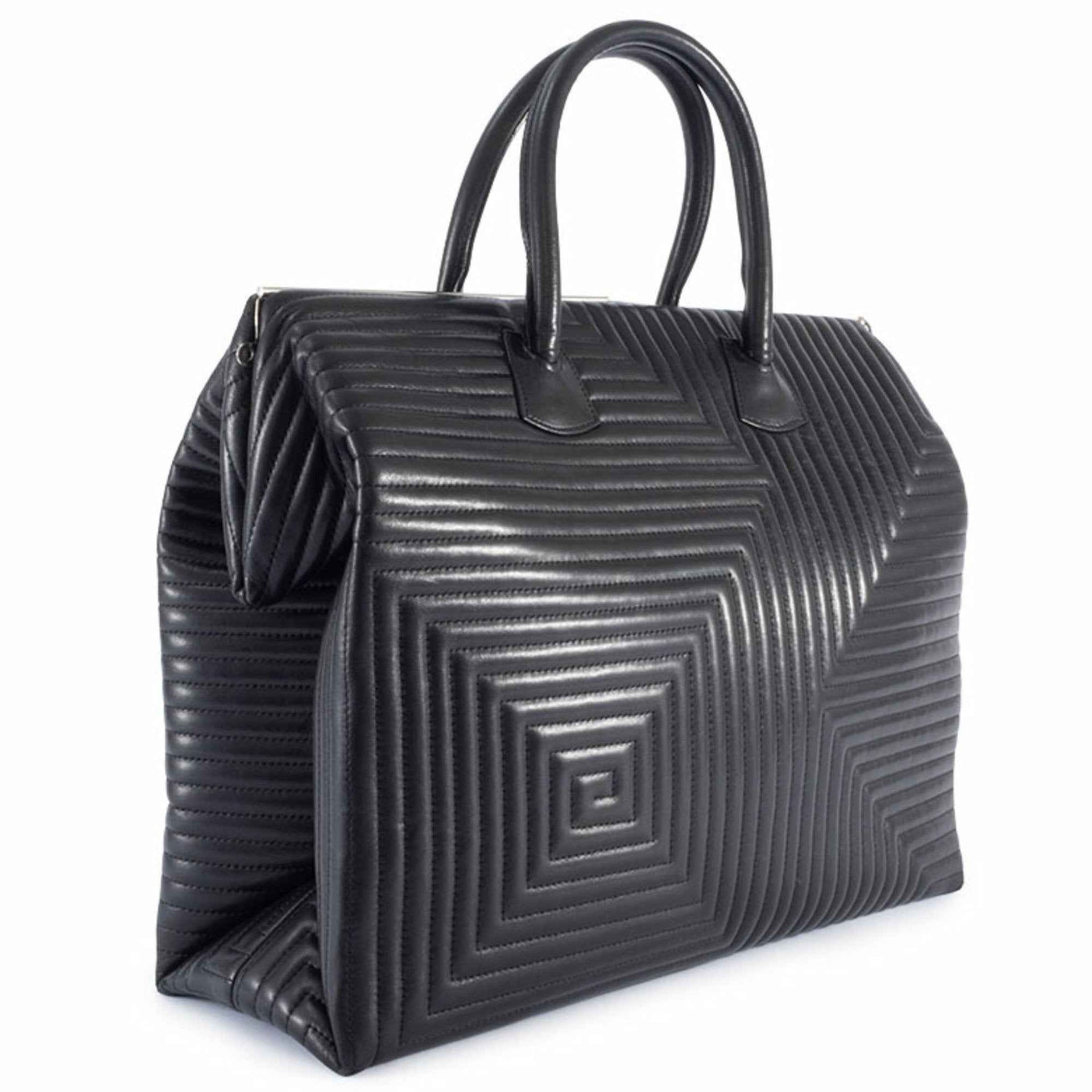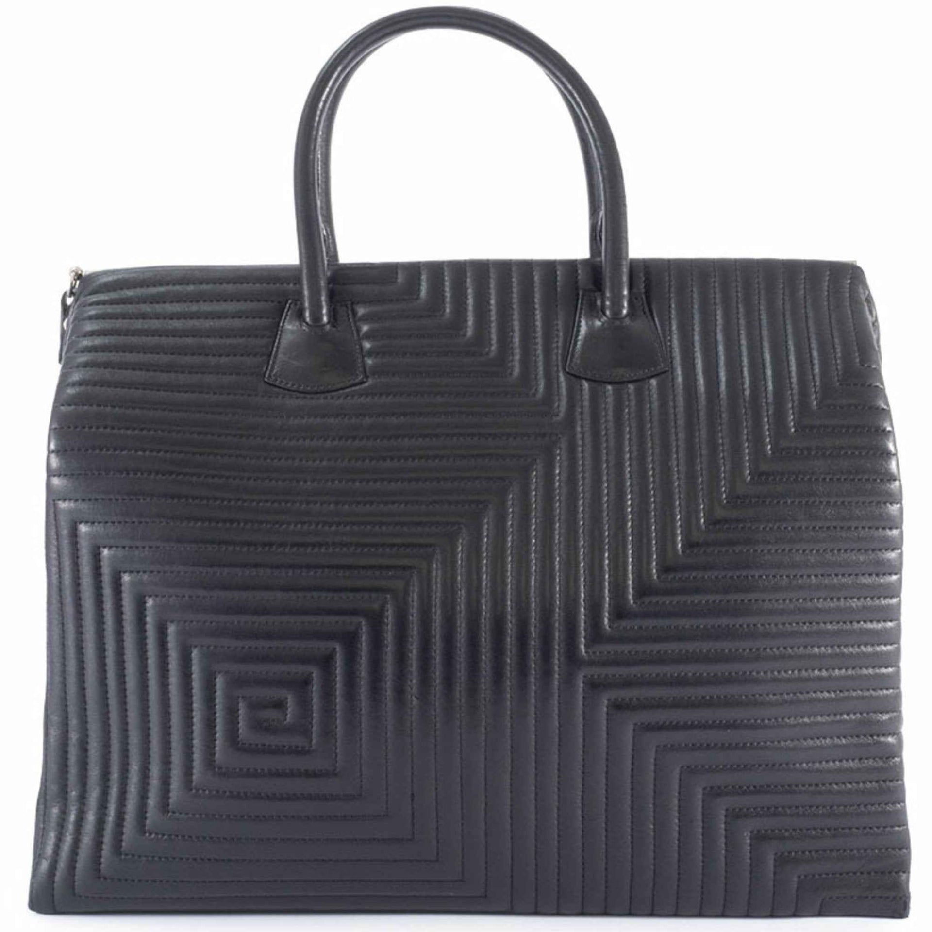 Bally quilted handbag in black leather. Women\'s square tote bag.