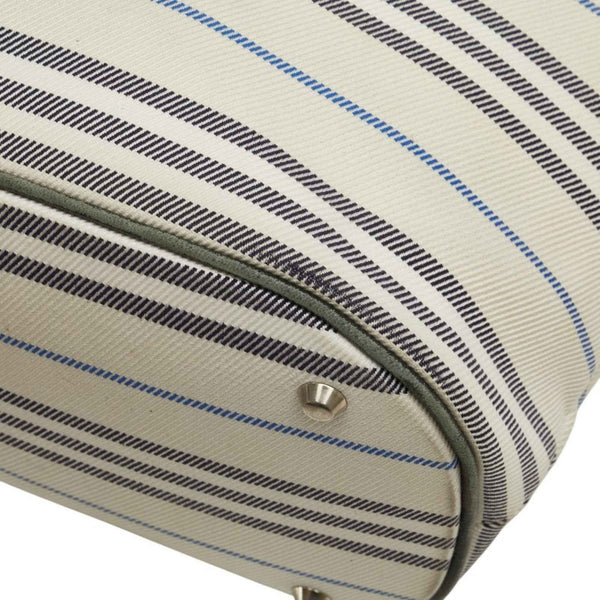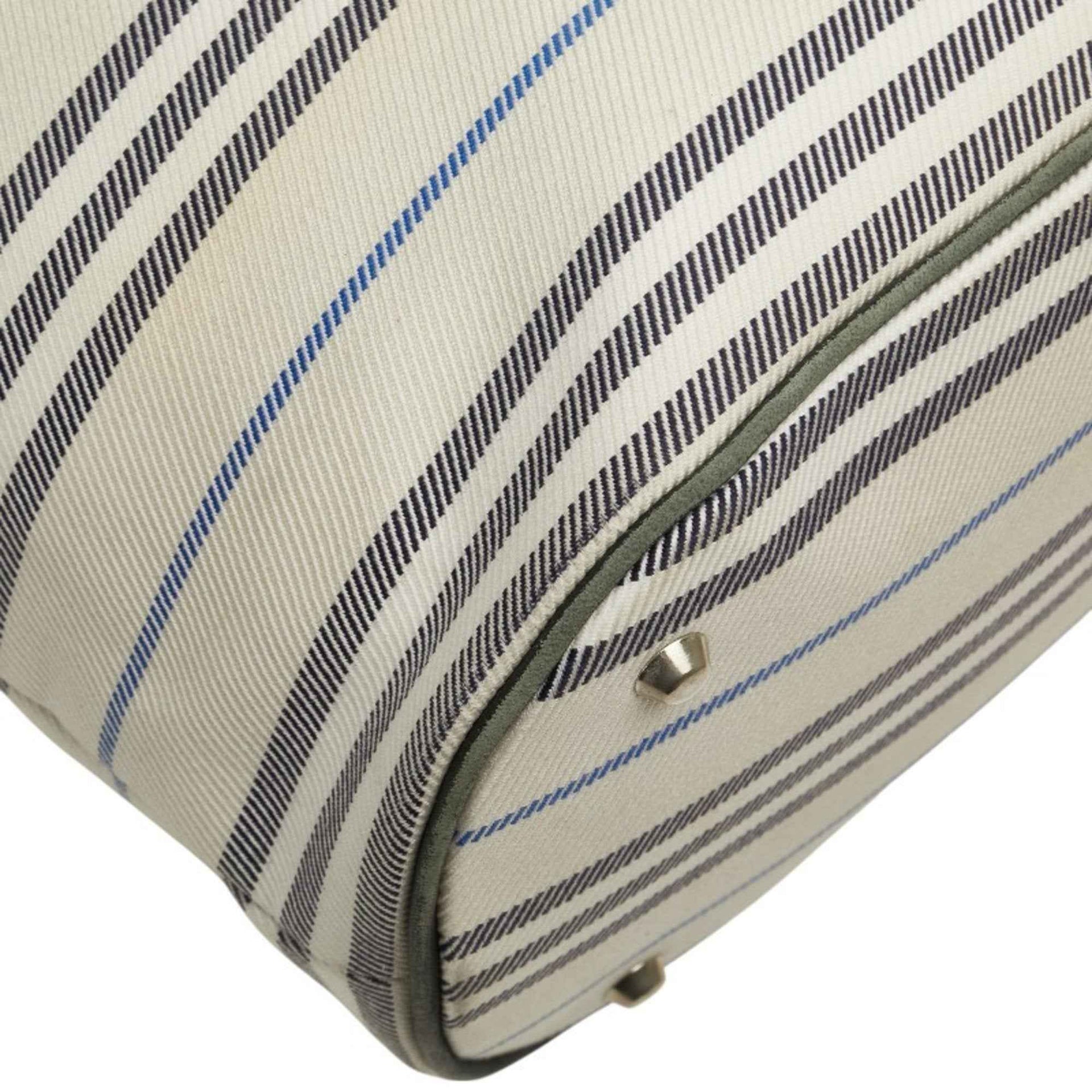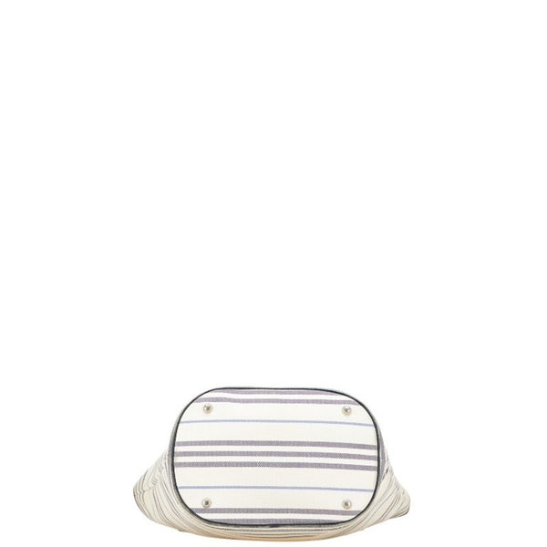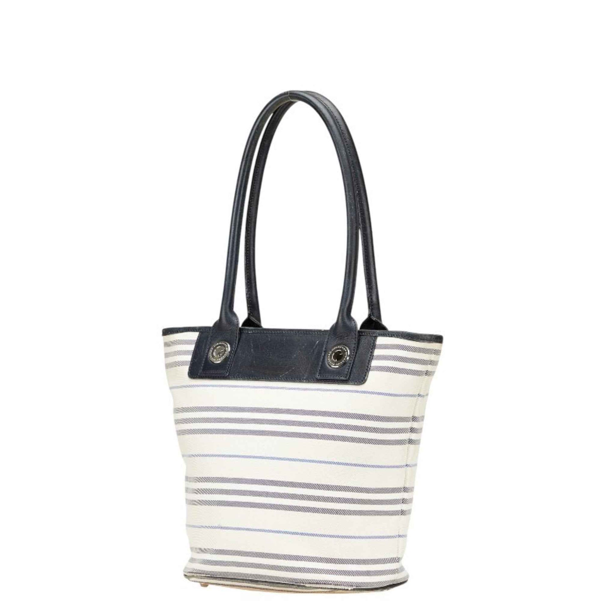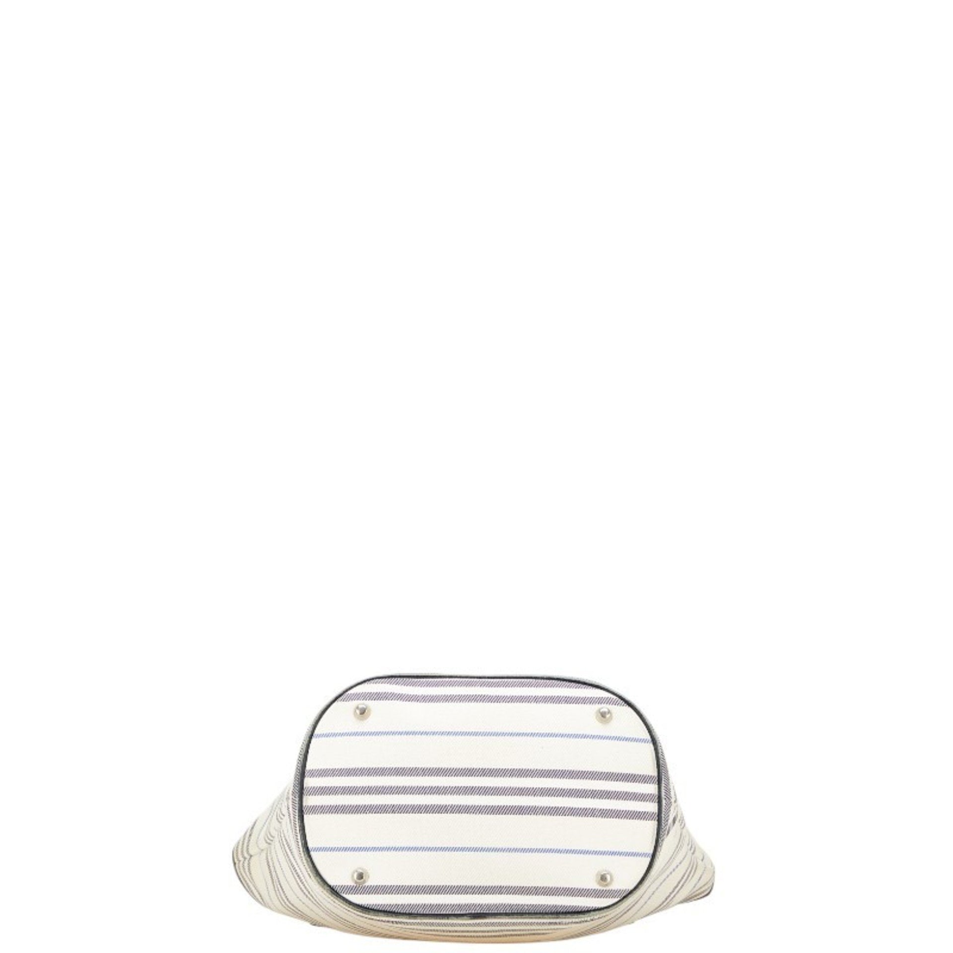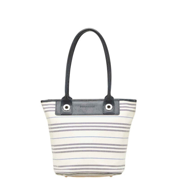 Burberry Border Tote Bag Handbag Ivory Navy Canvas Leather Women\'s BURBERRY