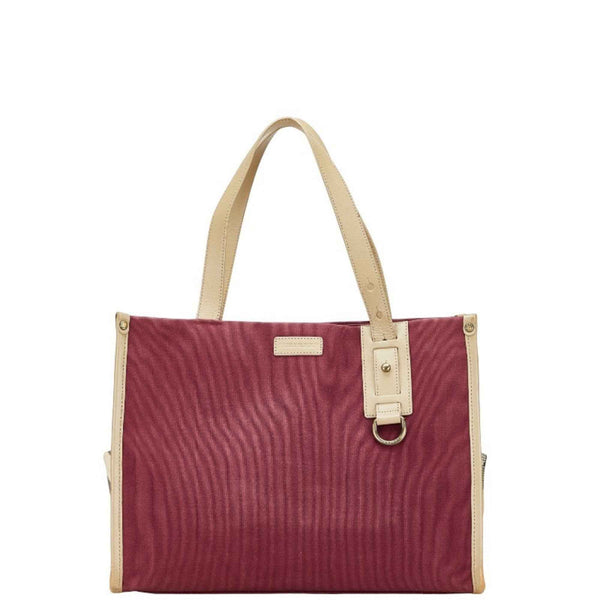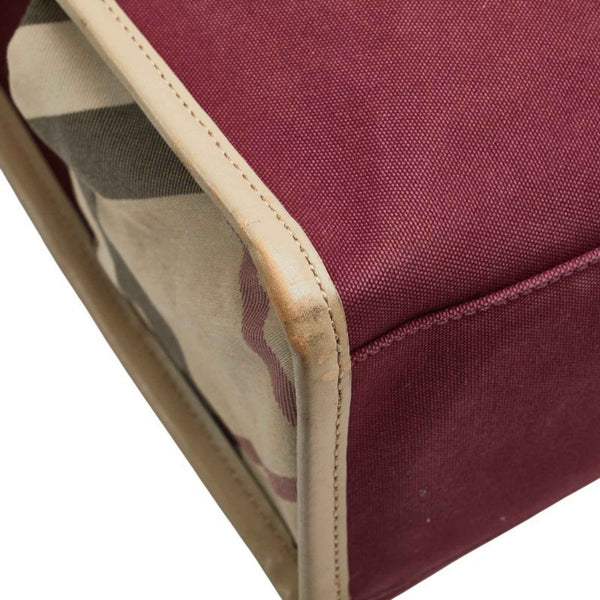 Burberry Check Handbag Tote Bag Purple Beige Canvas Leather Women\'s BURBERRY