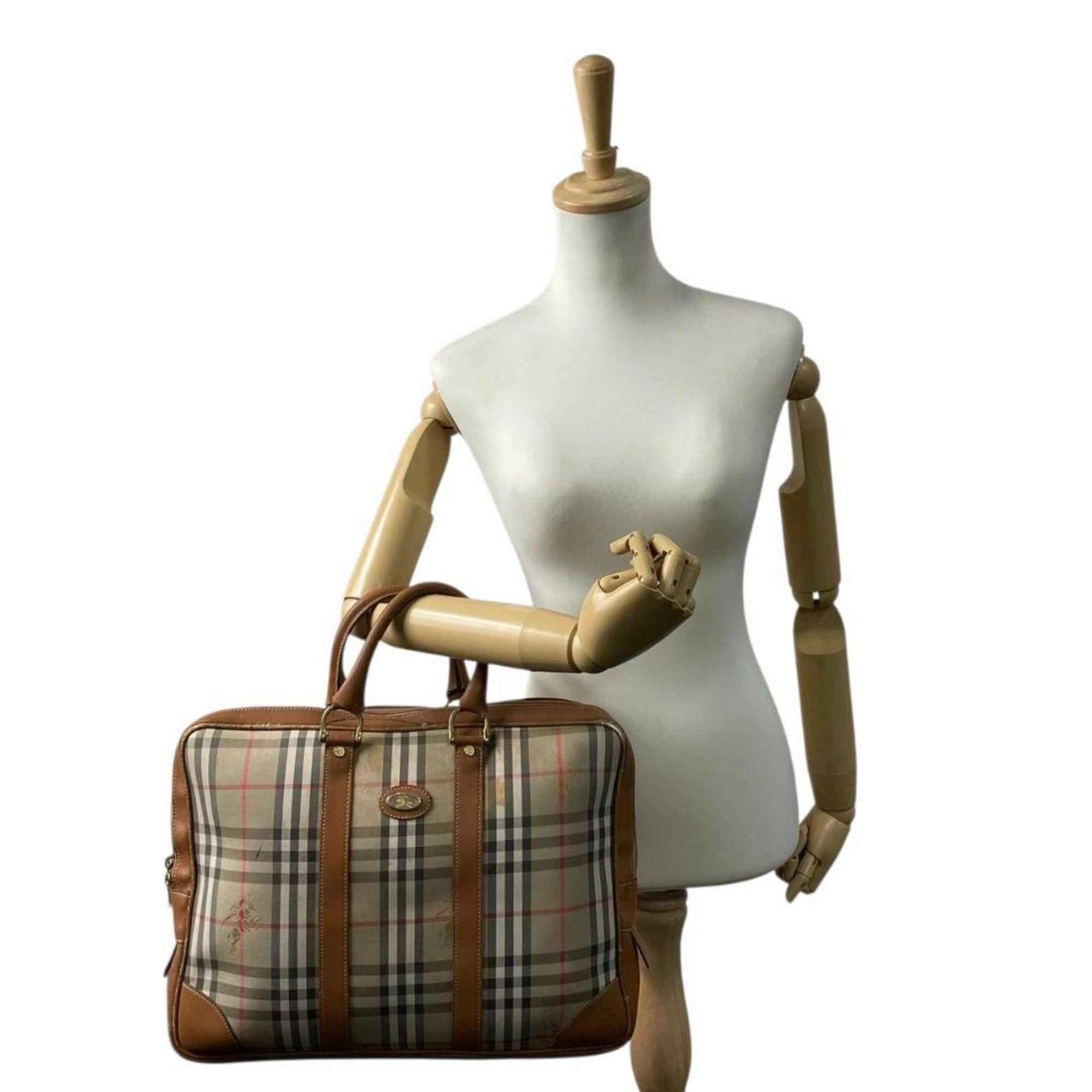 Burberry Nova Check Horse Logo Tote Bag, Handbag, Briefcase, Canvas and Leather, Brown, Gold Hardware, Men\'s Women\'s