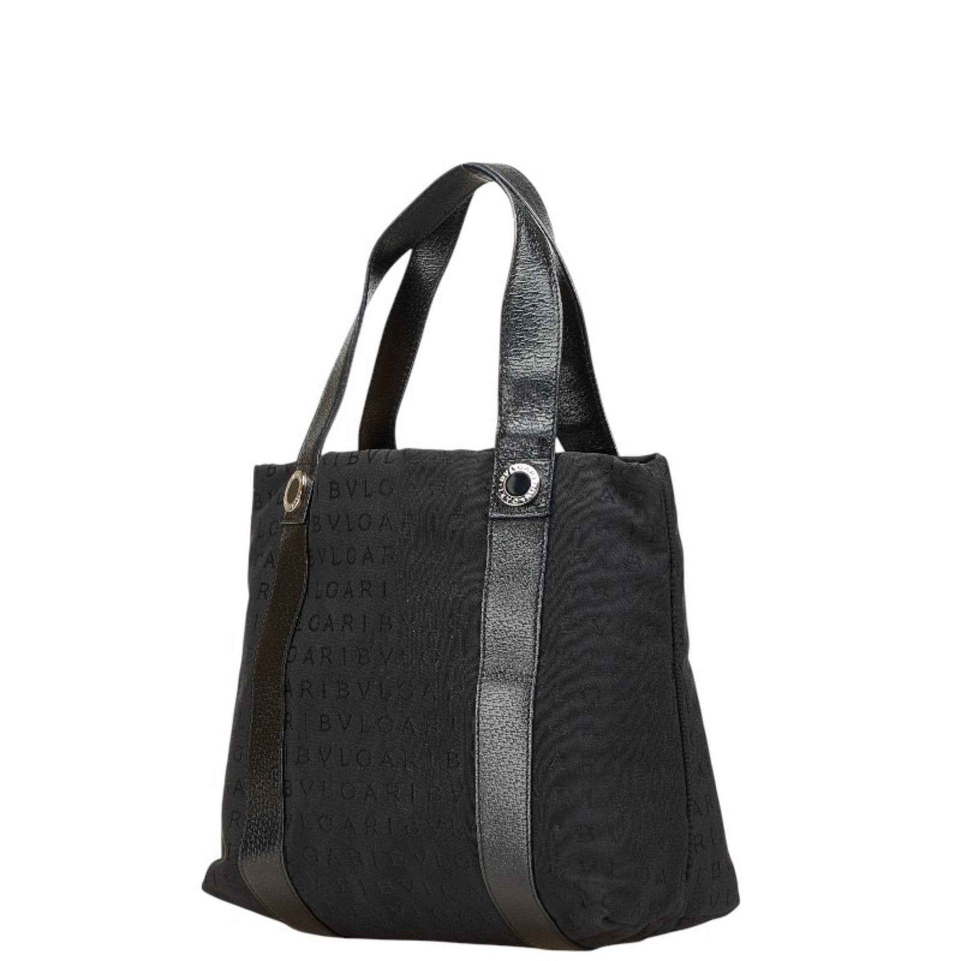 BVLGARI Logomania Tote Bag Handbag Black Canvas Leather Women\'s