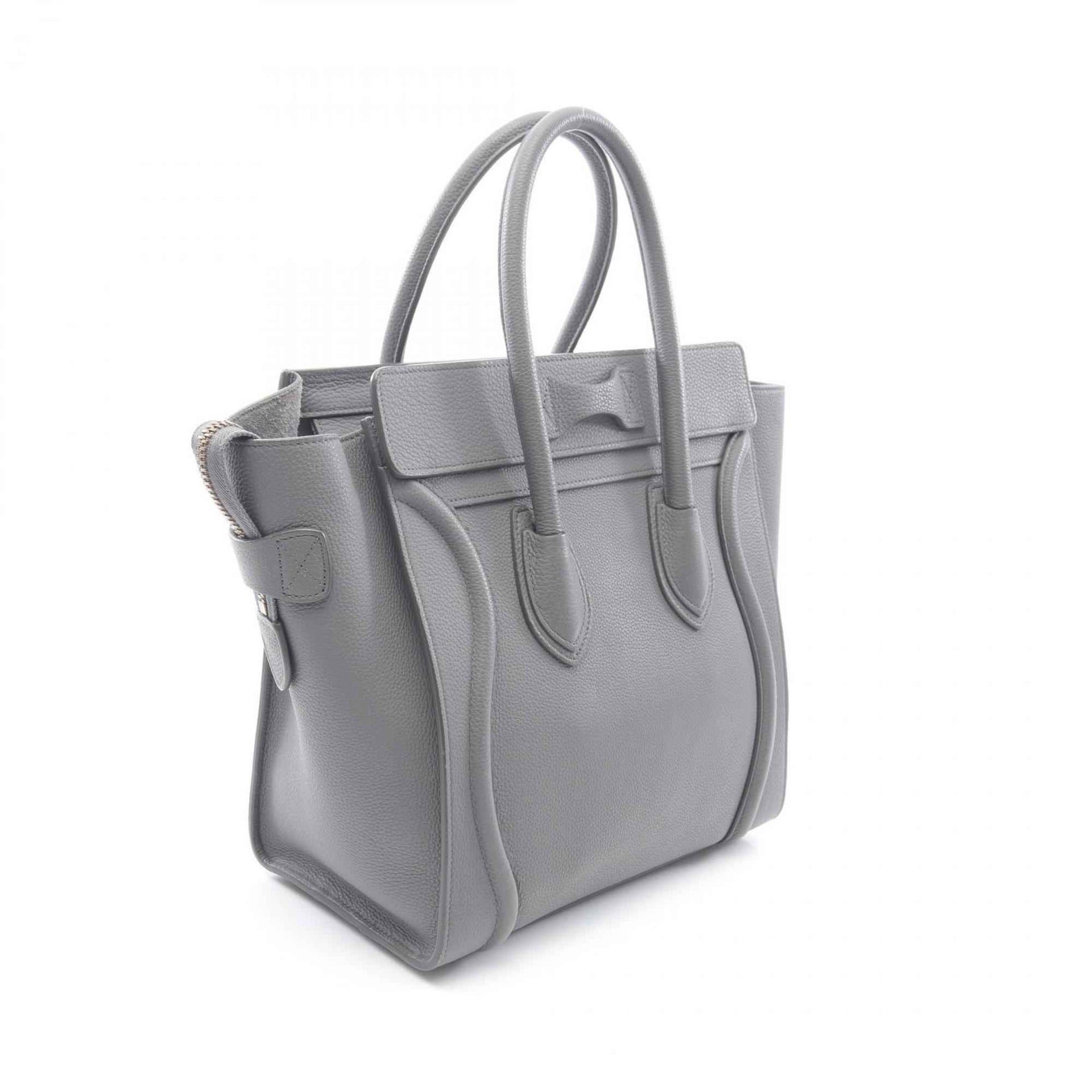 Celine Luggage Micro Shopper Tote Bag, Leather, Women\'s, Gray