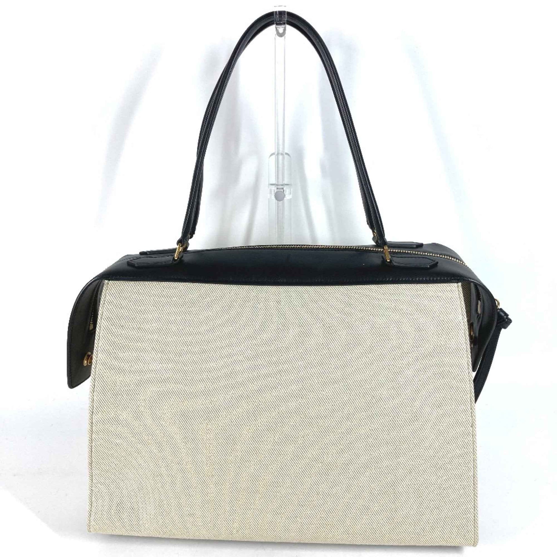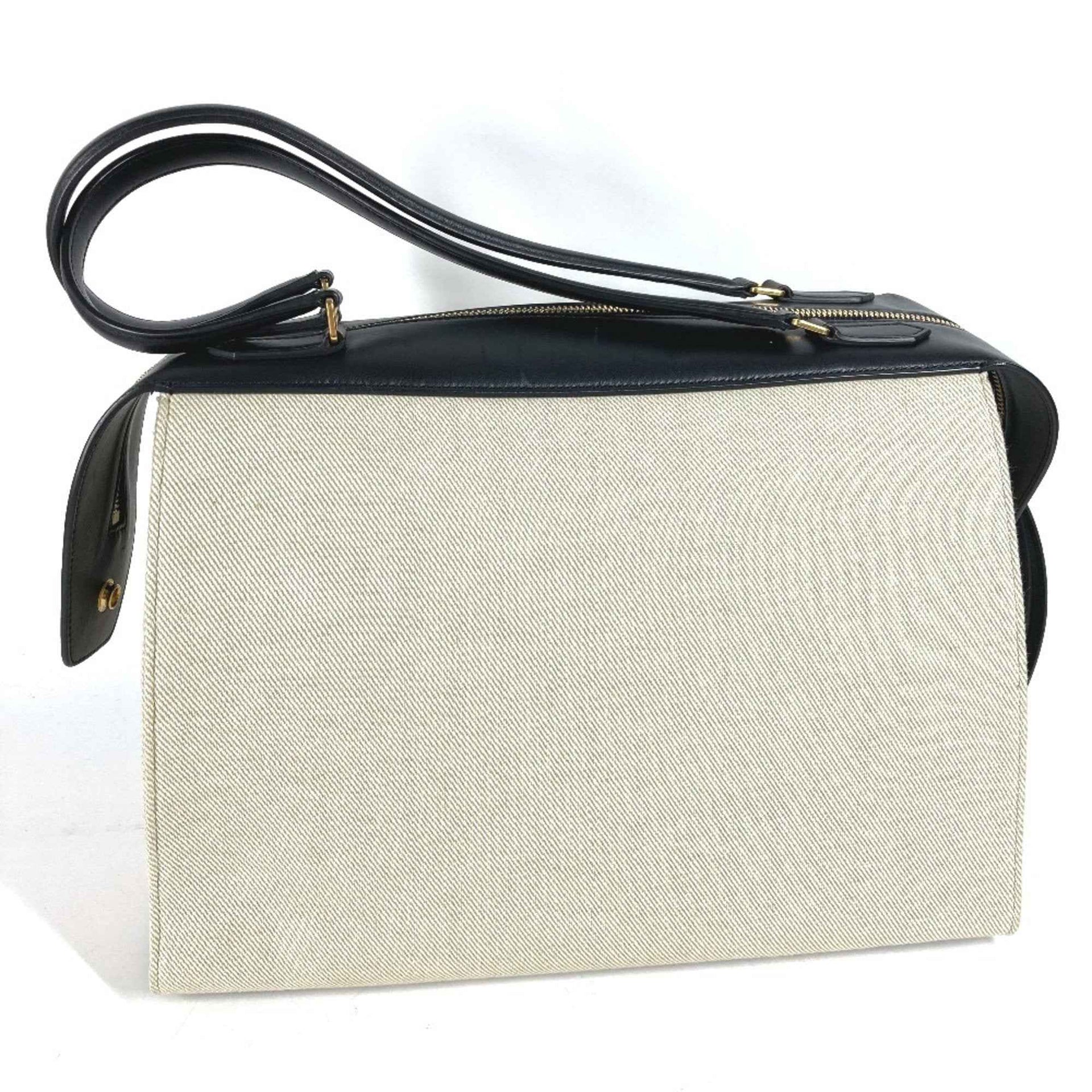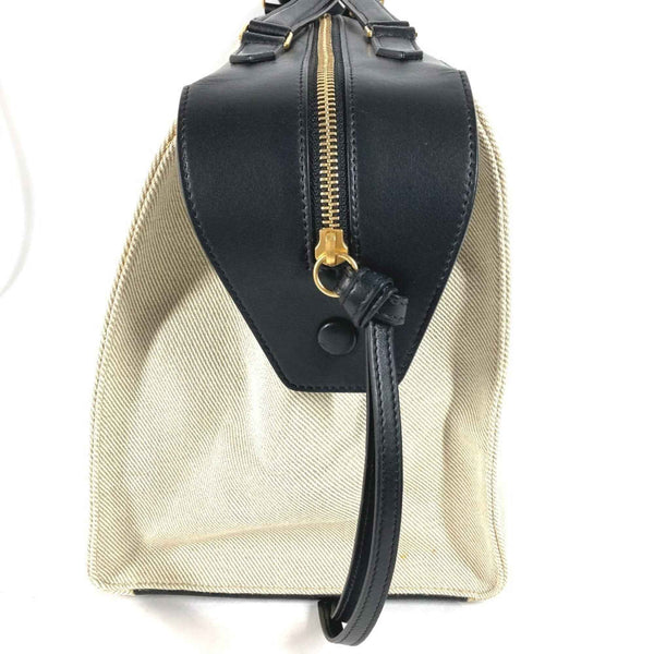 CELINE Small Ring Tote Bag Shoulder Leather/Canvas Women\'s Ivory