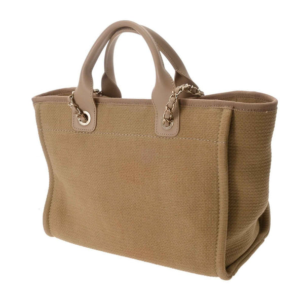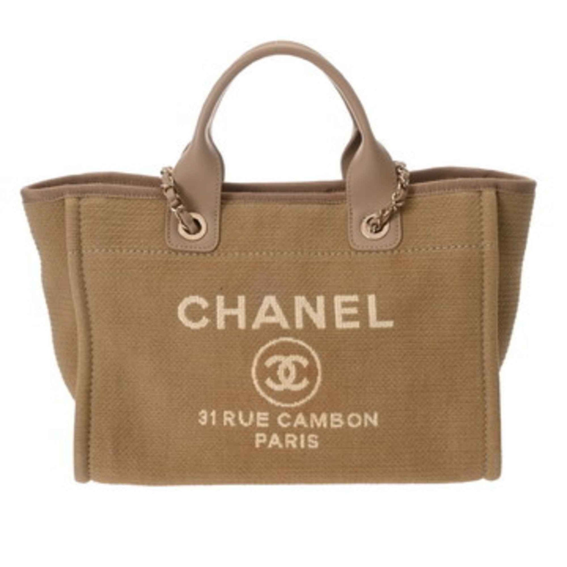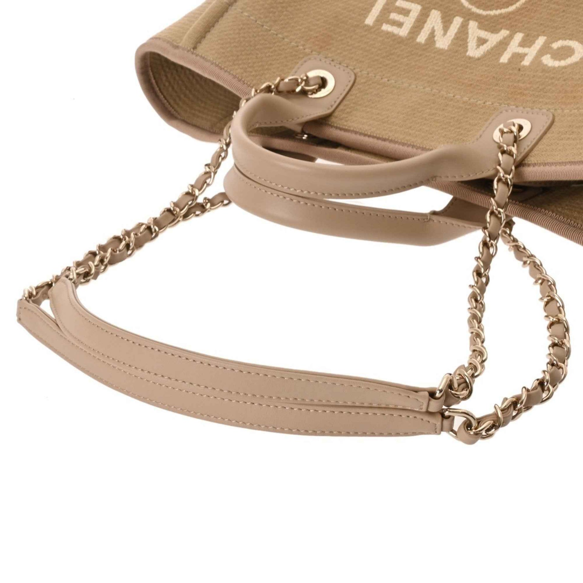CHANEL Deauville MM Chain Tote, Beige, Women\'s Canvas Tote Bag