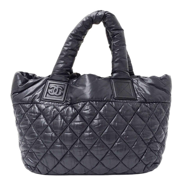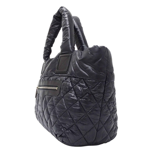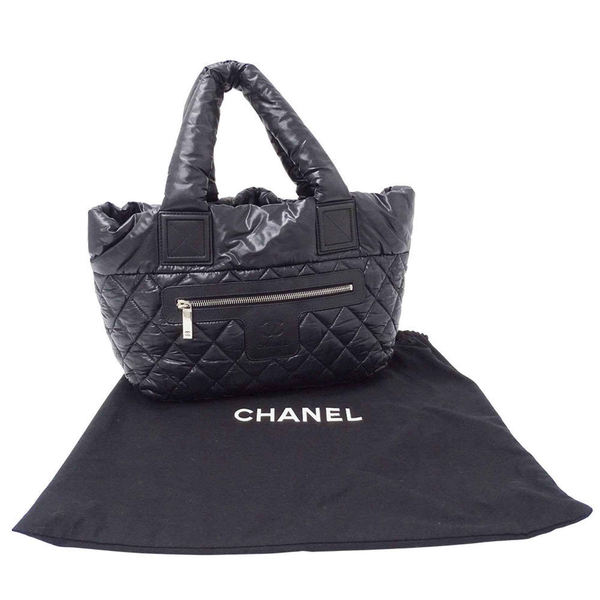 CHANEL Women\'s Coco Cocoon Tote Bag, Black Nylon with Silver Hardware, A48610, Quilted