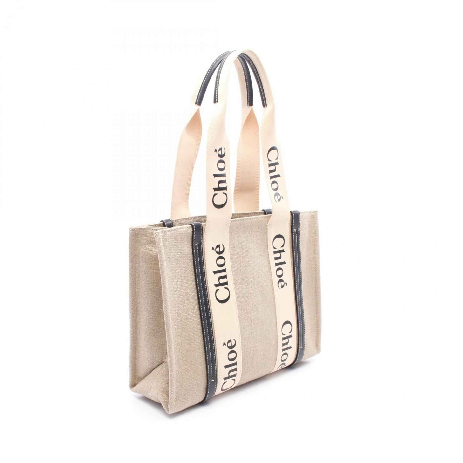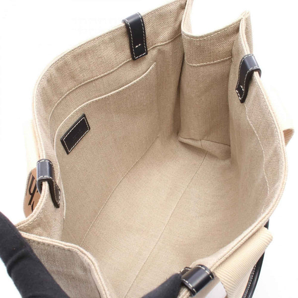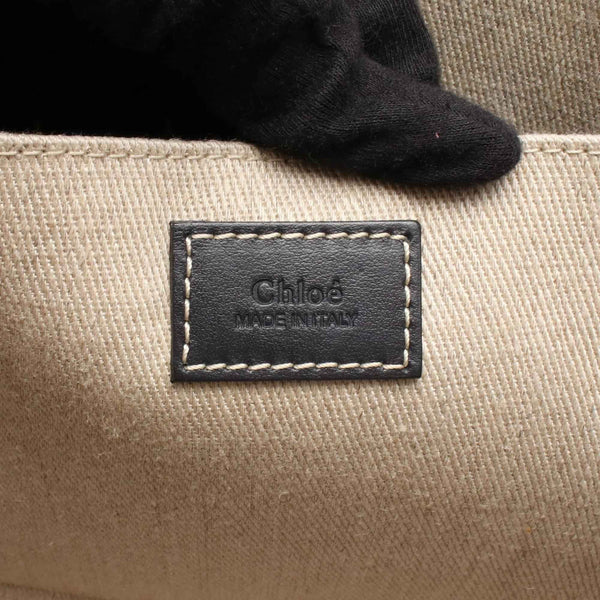 Chloé Chloe WOODY Medium Tote Bag, Canvas and Leather, Women\'s, Beige Black
