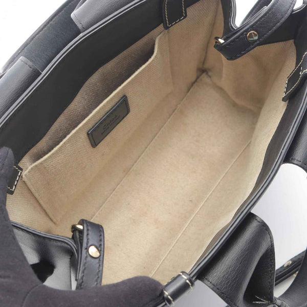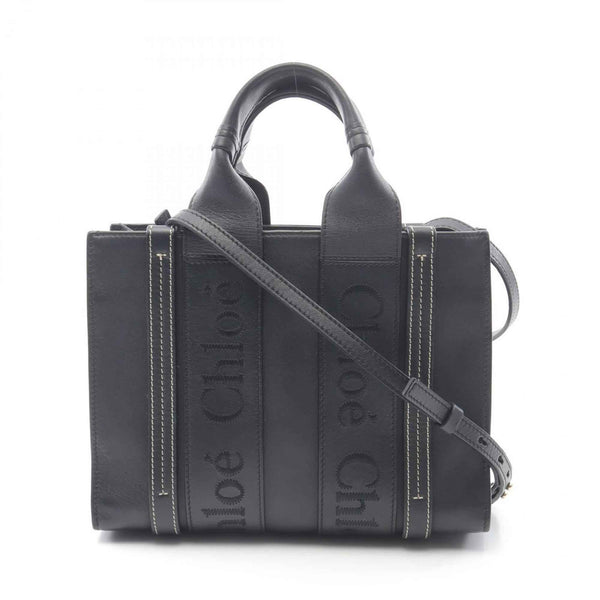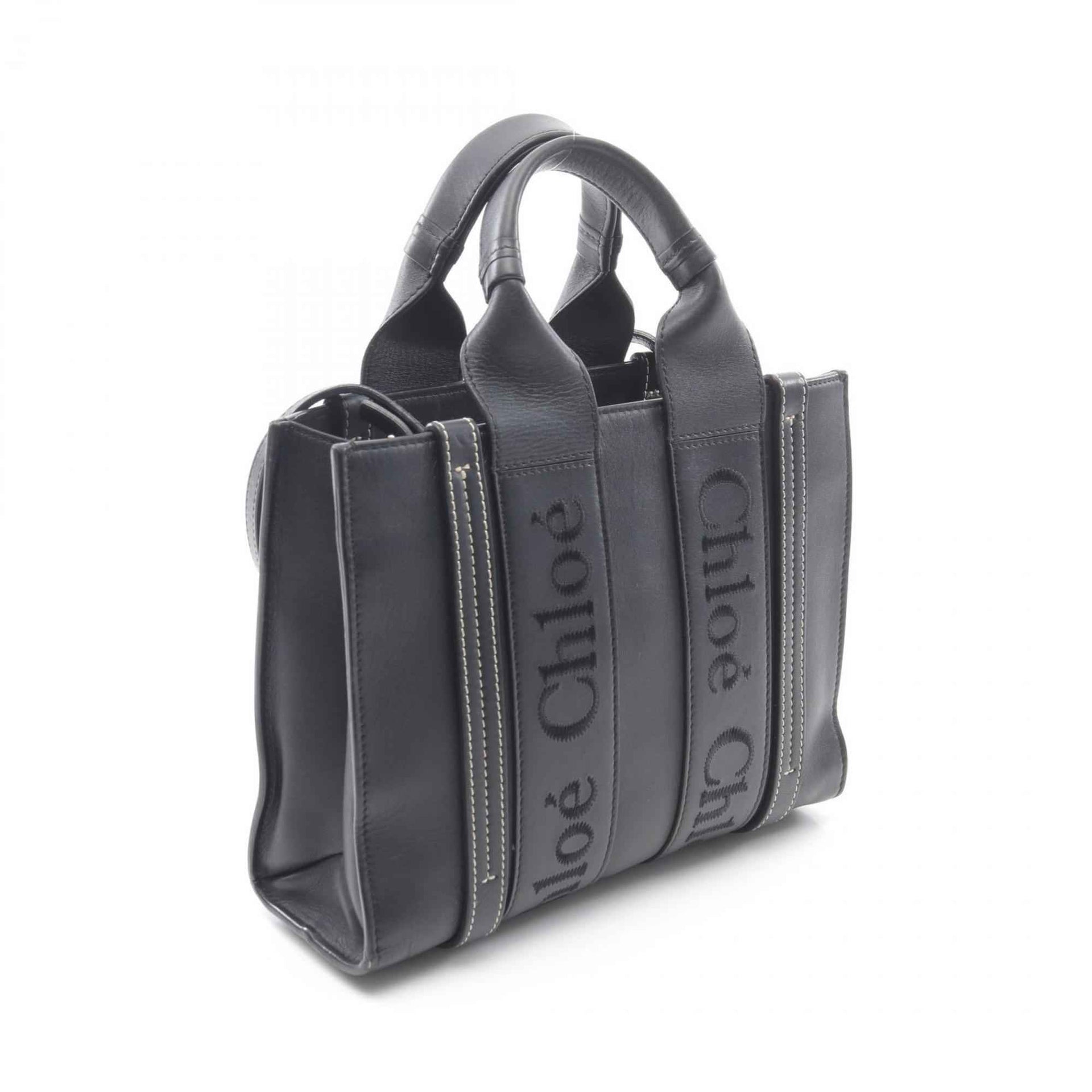 Chloé Chloe WOODY Small Tote Bag, Leather, Women\'s, Black, CHC22WS397