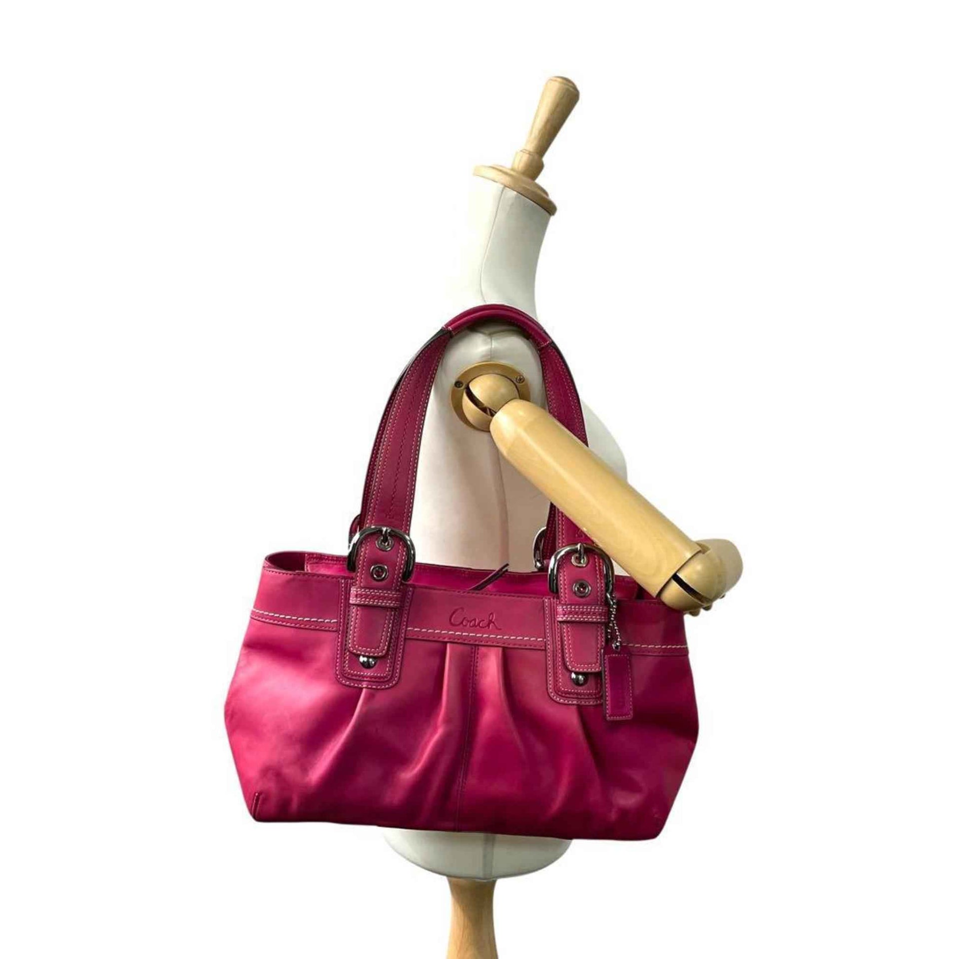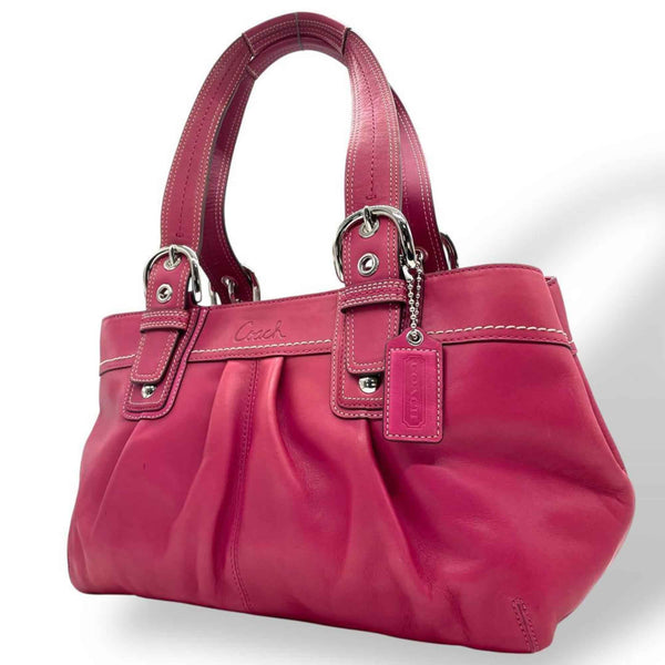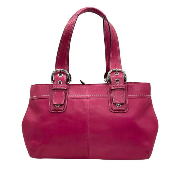 Coach Soho Tote Bag, Pink Leather, F13732, One-Shoulder, Handbag, Silver Hardware, Charm, Logo Engraving, Women\'s COACH S94