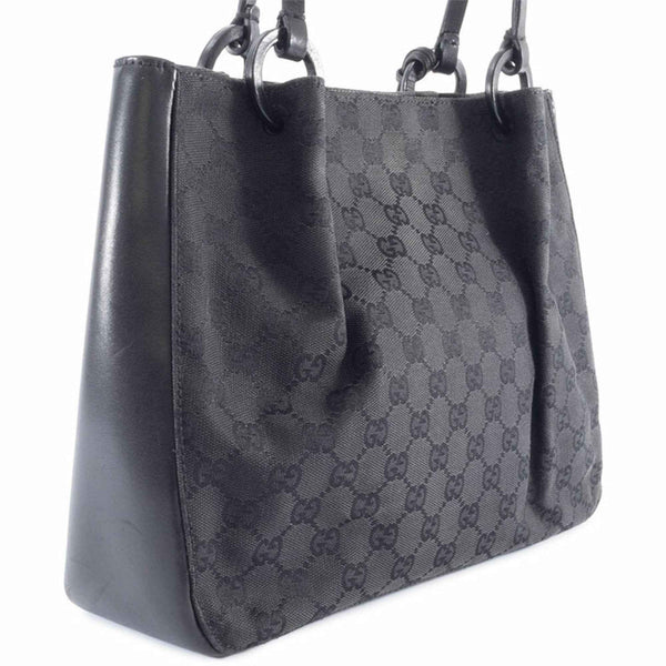 Gucci GG Canvas Leather Tote Bag 101919 Black Women\'s Handbag GUCCI