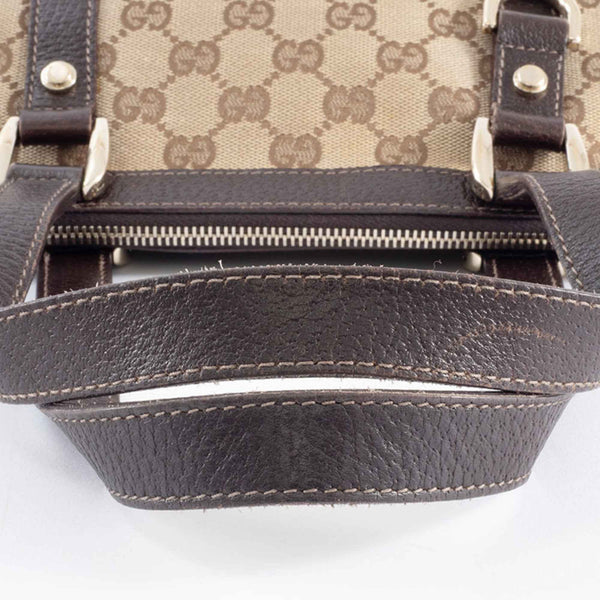 Gucci GG Canvas Tote Bag 141471 Leather Beige Brown Women\'s Mini Handbag GUCCI