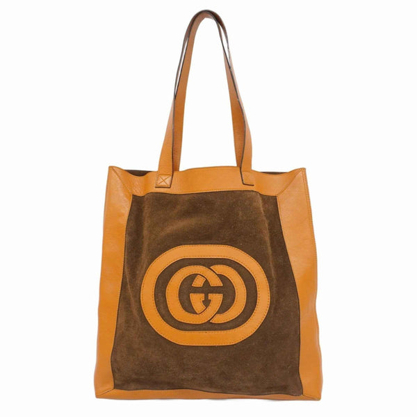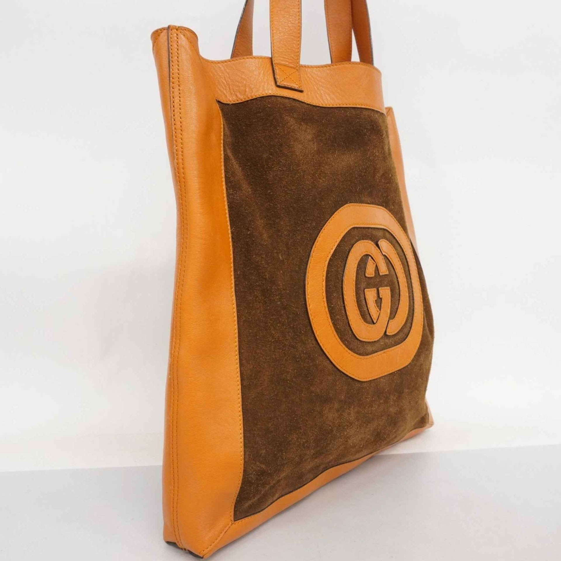 Gucci Interlocking G Tote Bag 519335 Suede Leather Brown Men\'s