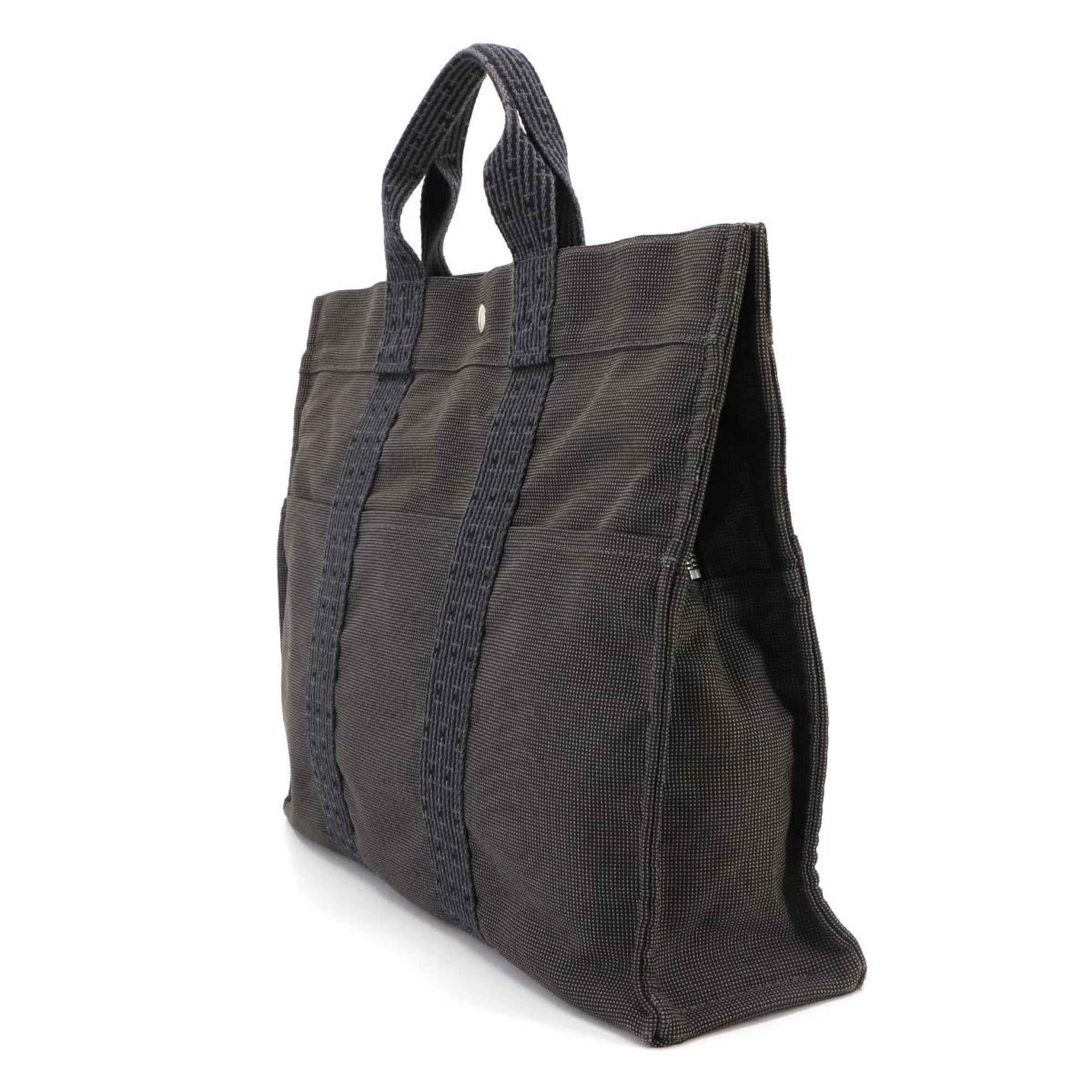 Hermes Hermès Herline MM Tote Bag, Gray Canvas with Silver Hardware