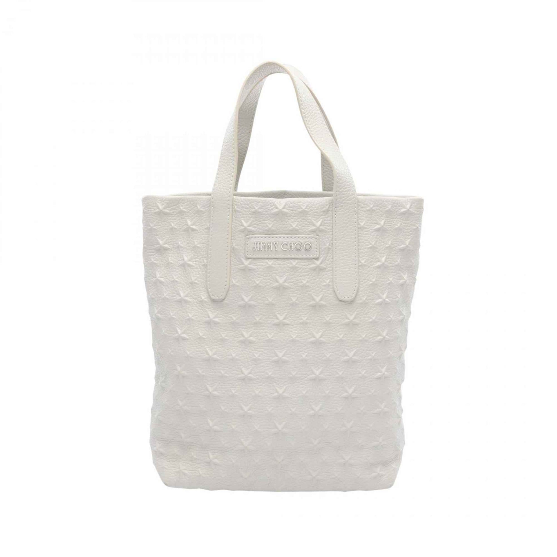 JIMMY CHOO SOFIA N/S Star Embossed Tote Bag, Leather, Women\'s, White