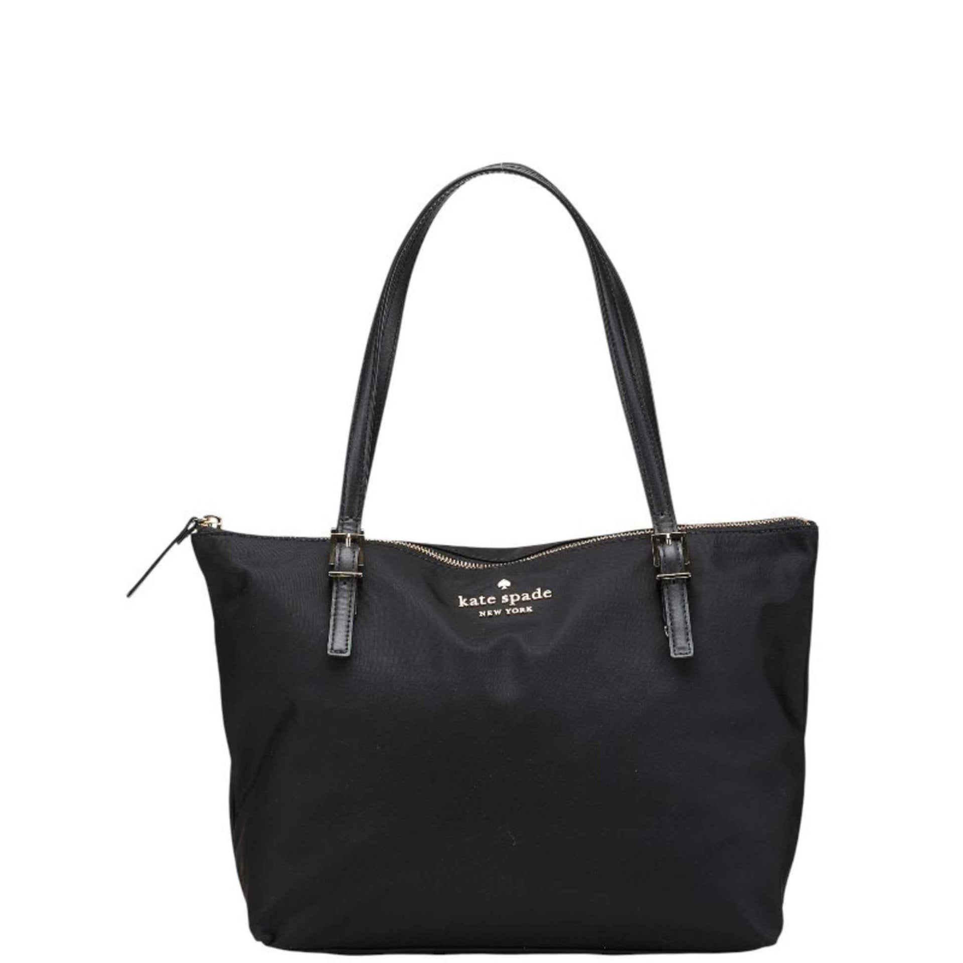 Kate Spade logo tote bag, handbag, black nylon and leather, women\'s.