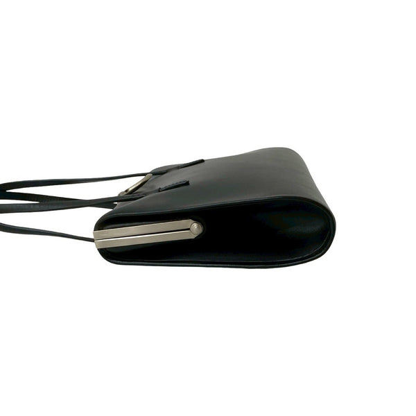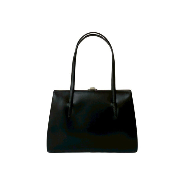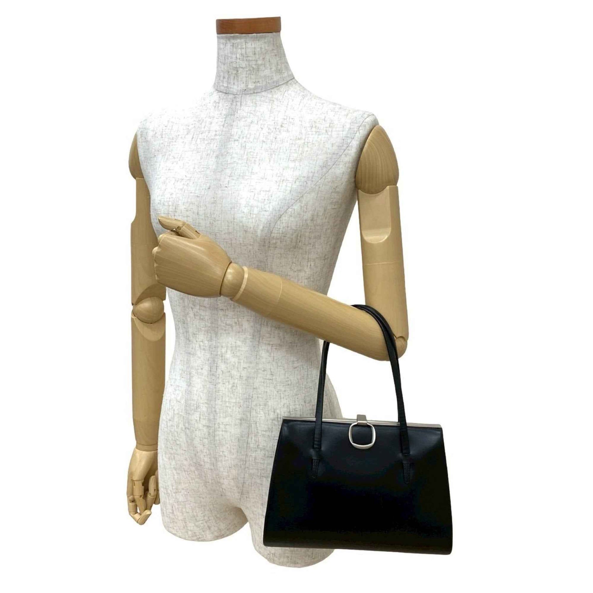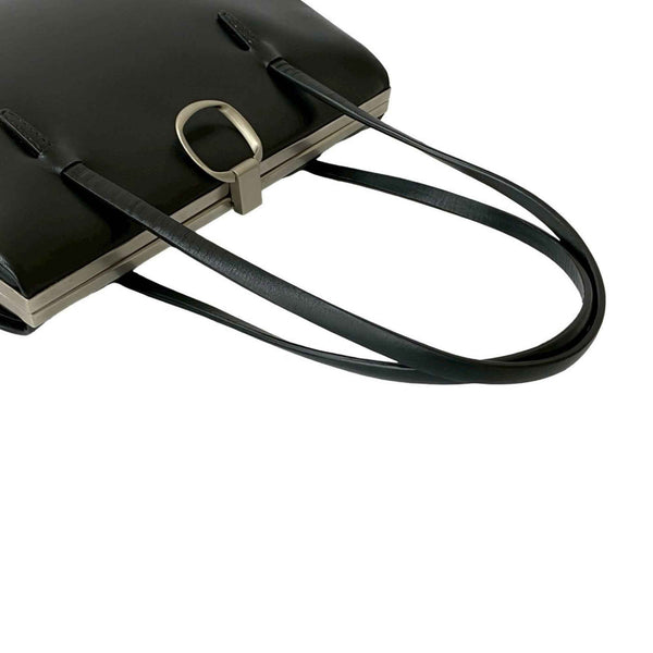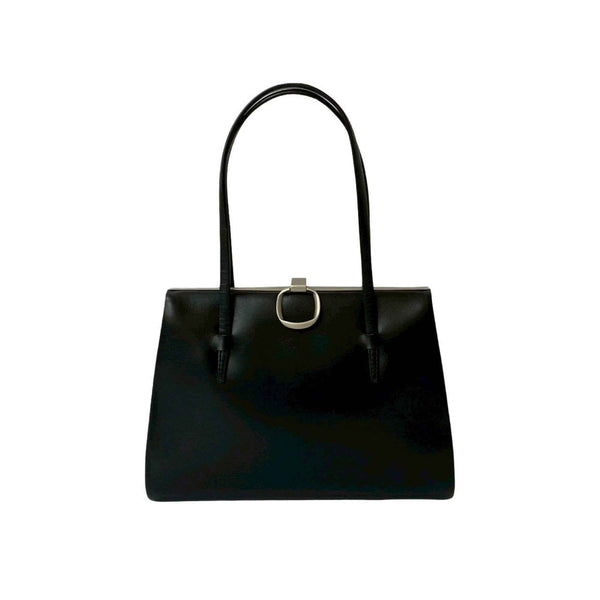 LOEWE Calf Leather Clasp Mini Handbag/Tote Bag, Black/Silver, 79970