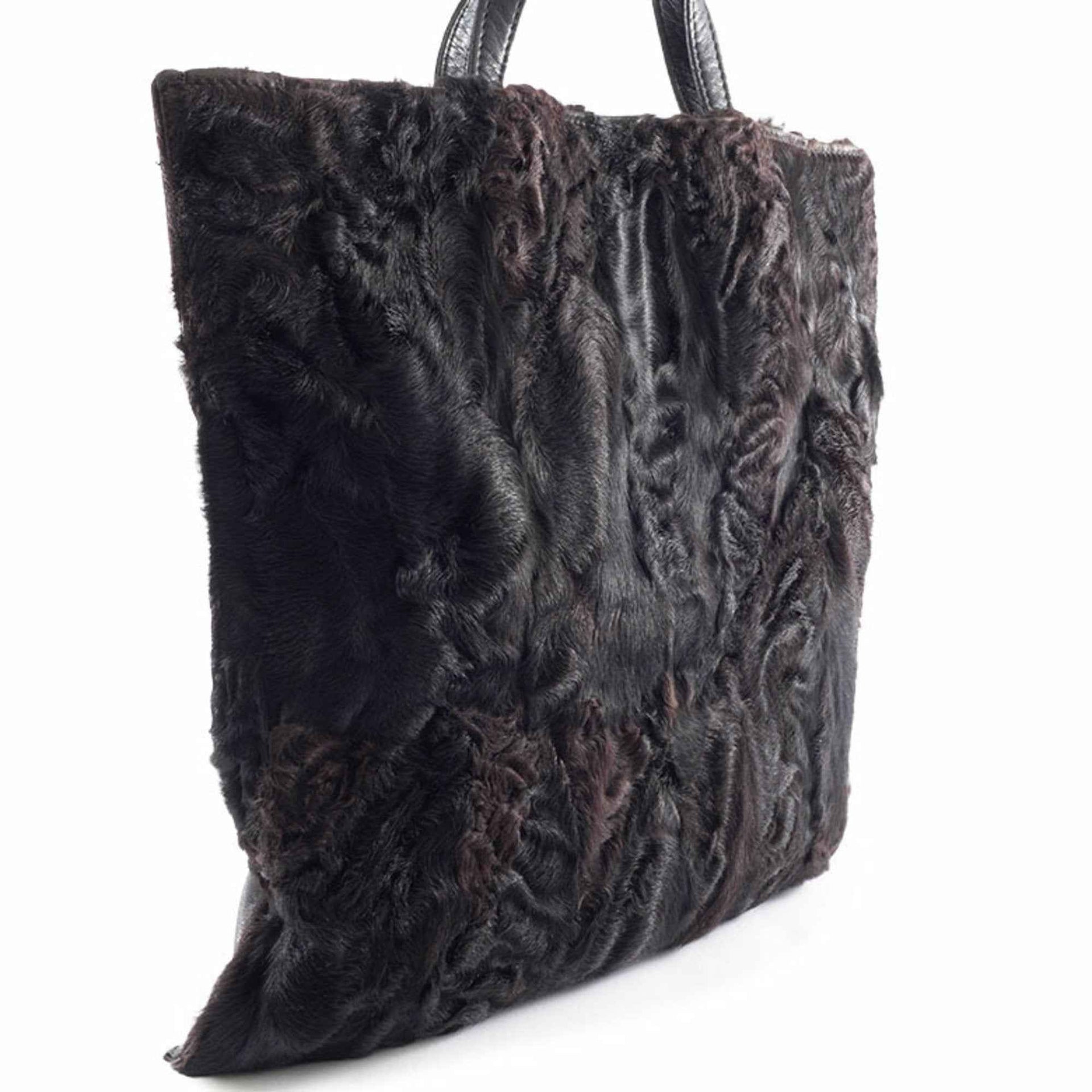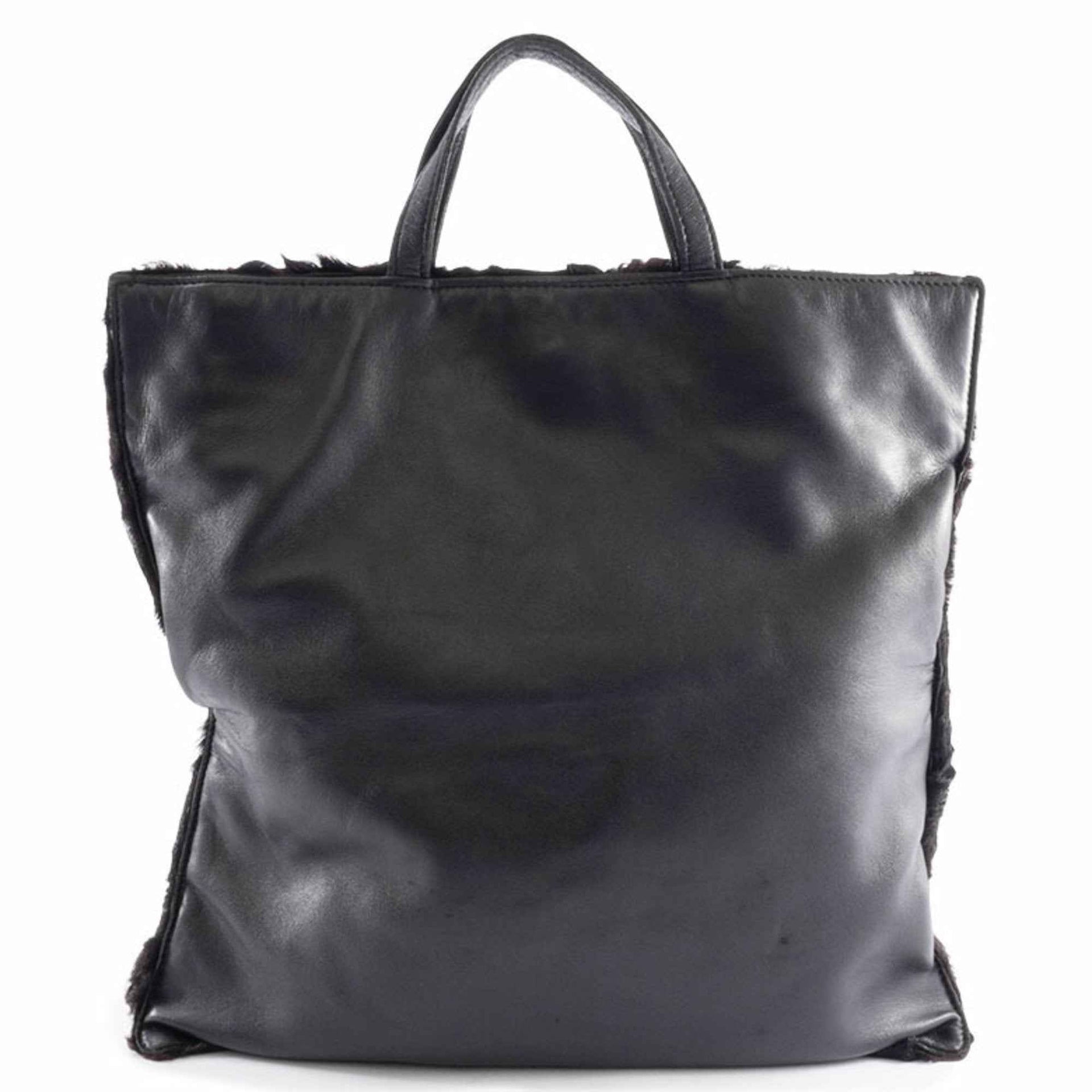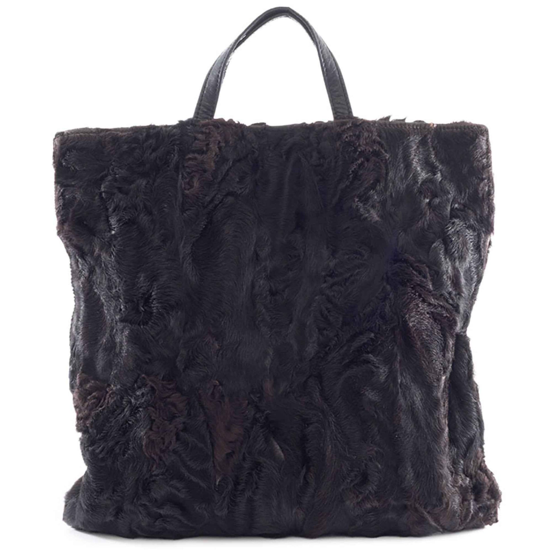 LOEWE fur handbag, leather, black and brown, women\'s lamb tote bag.