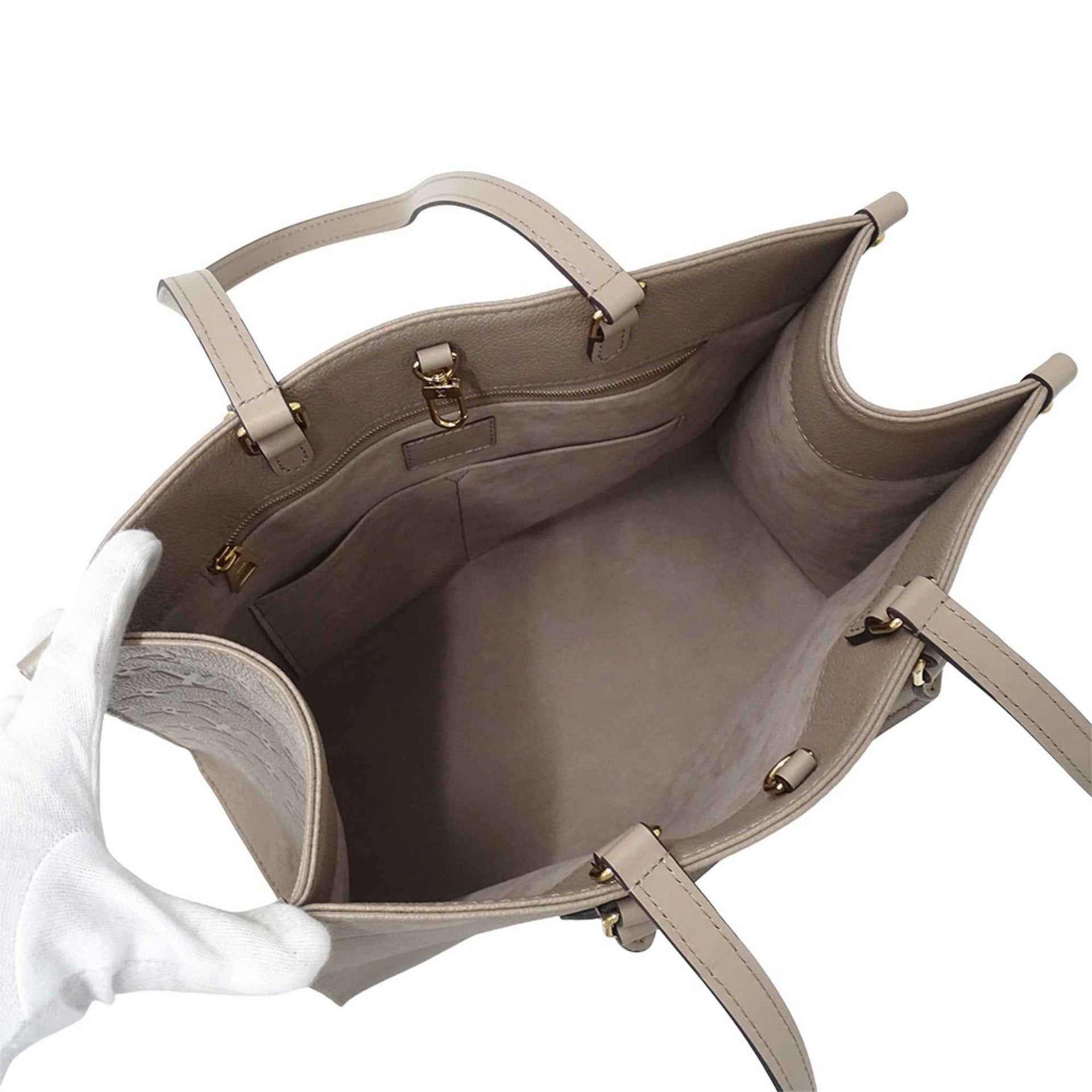 Louis Vuitton Monogram Empreinte Women\'s Tote Bag, 2-Way On-the-Go MM Tourterelle M45607, Beige