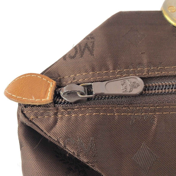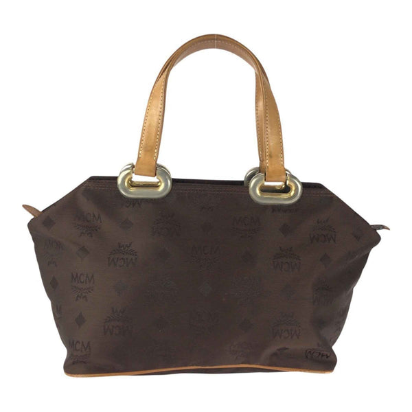 MCM Brown Gold Hardware Nylon Leather Tote Bag 161004 Women\'s Handbag