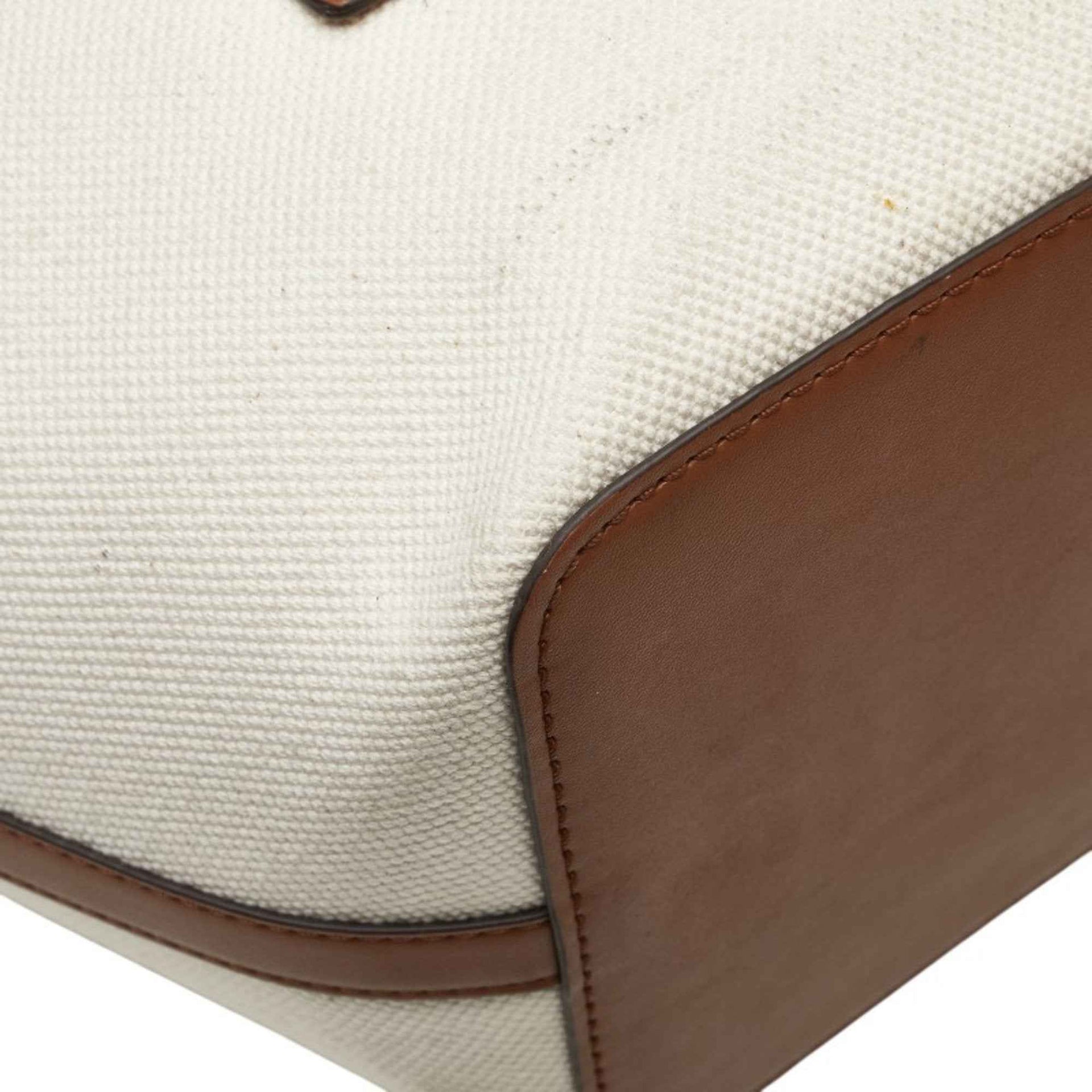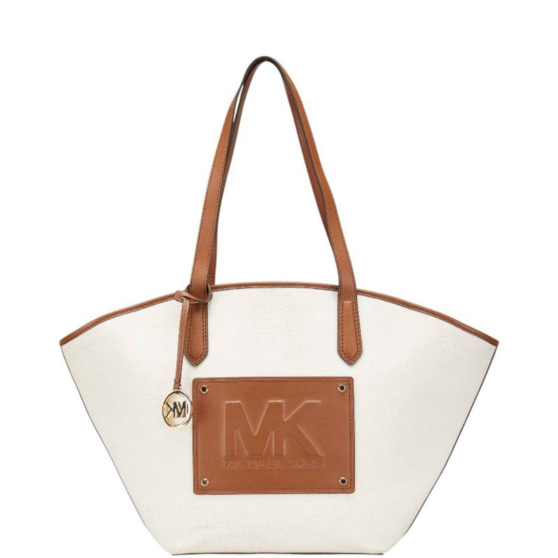 Michael Kors Kimber Tote Bag, Handbag, White/Brown Canvas and Leather, Women\'s
