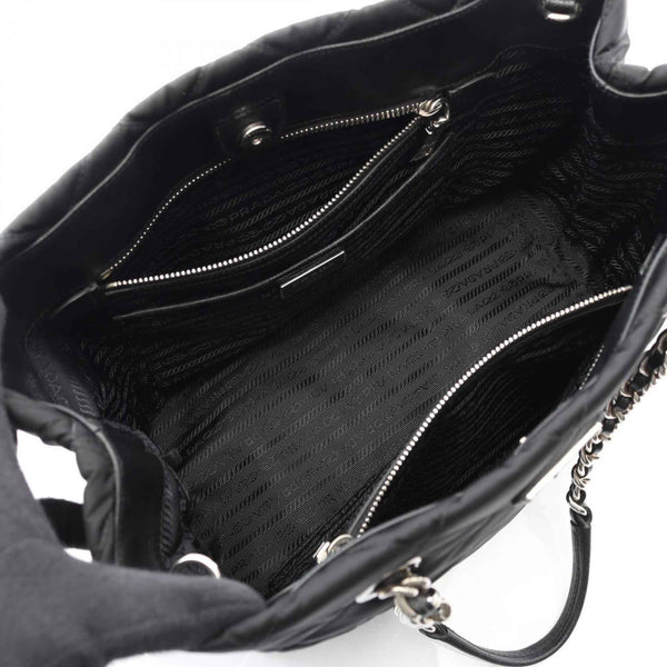 Prada TESSUTO IMPUNTU Tote Bag in Nylon and Saffiano Leather, Black