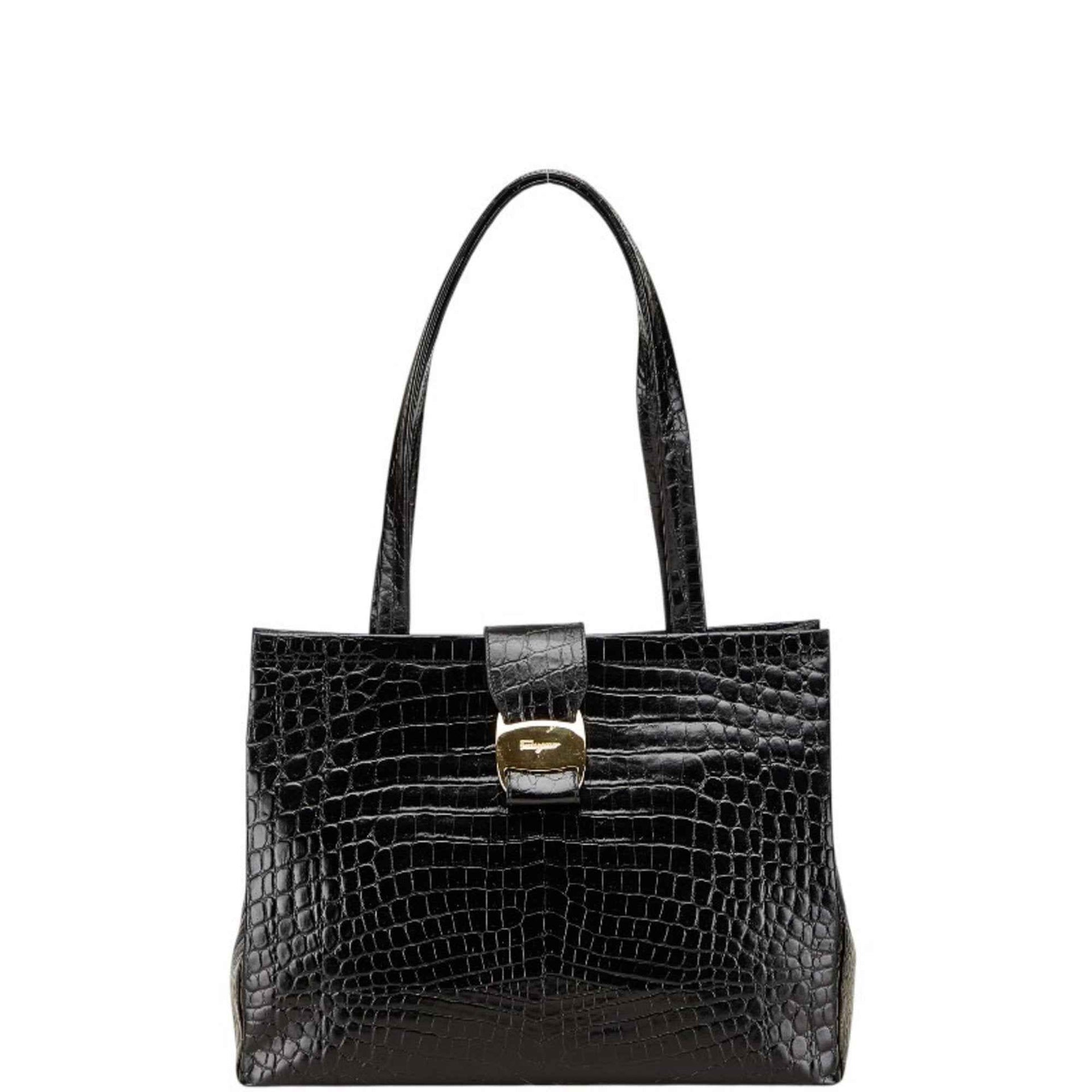 Salvatore Ferragamo Vara Embossed Handbag Tote Bag in Black Leather for Women