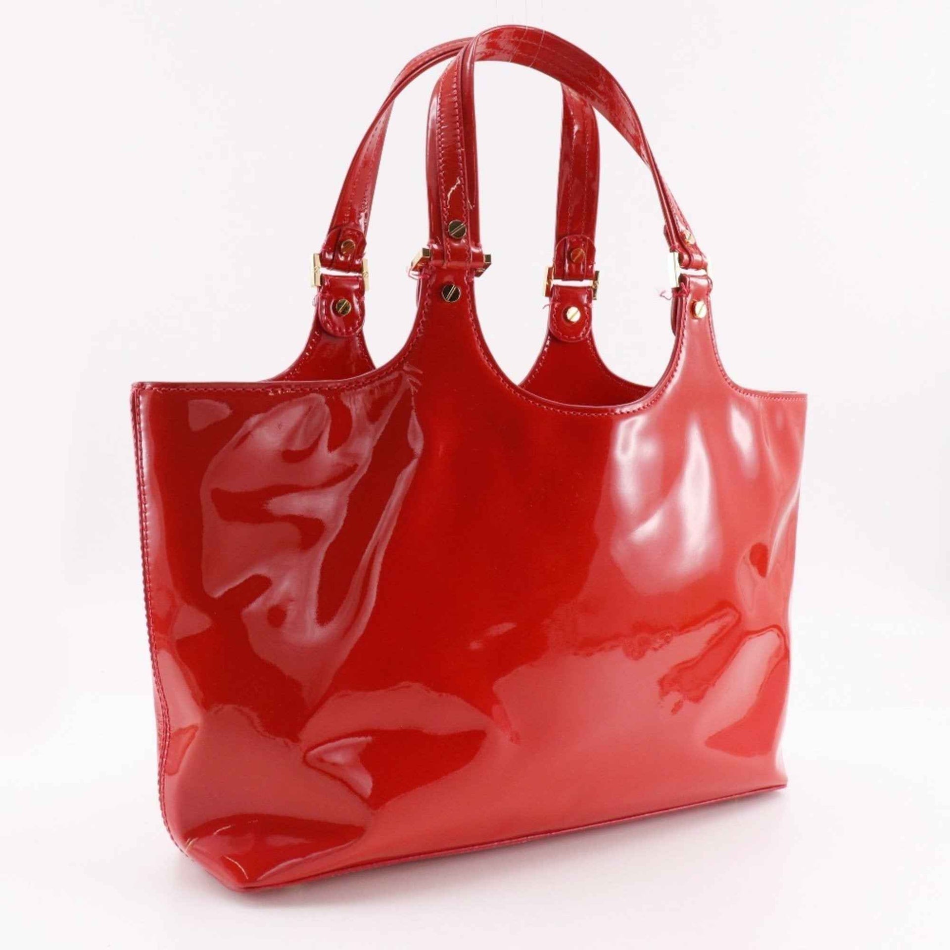 Tory Burch Punching Logo Tote Bag, Red Enamel, A5 Size, Women\'s