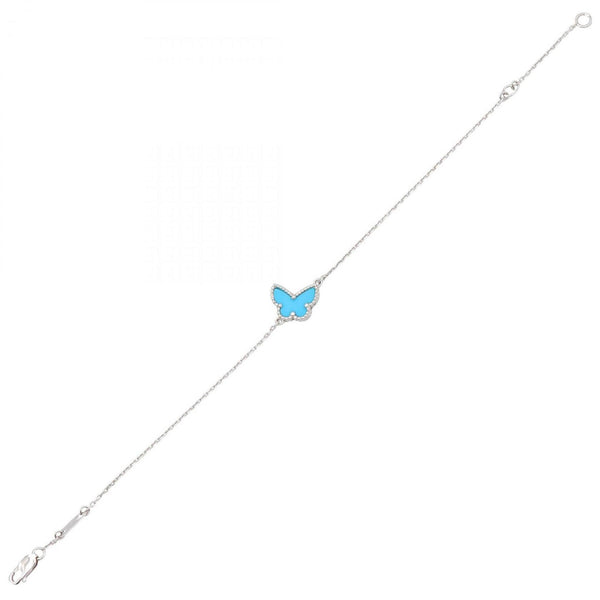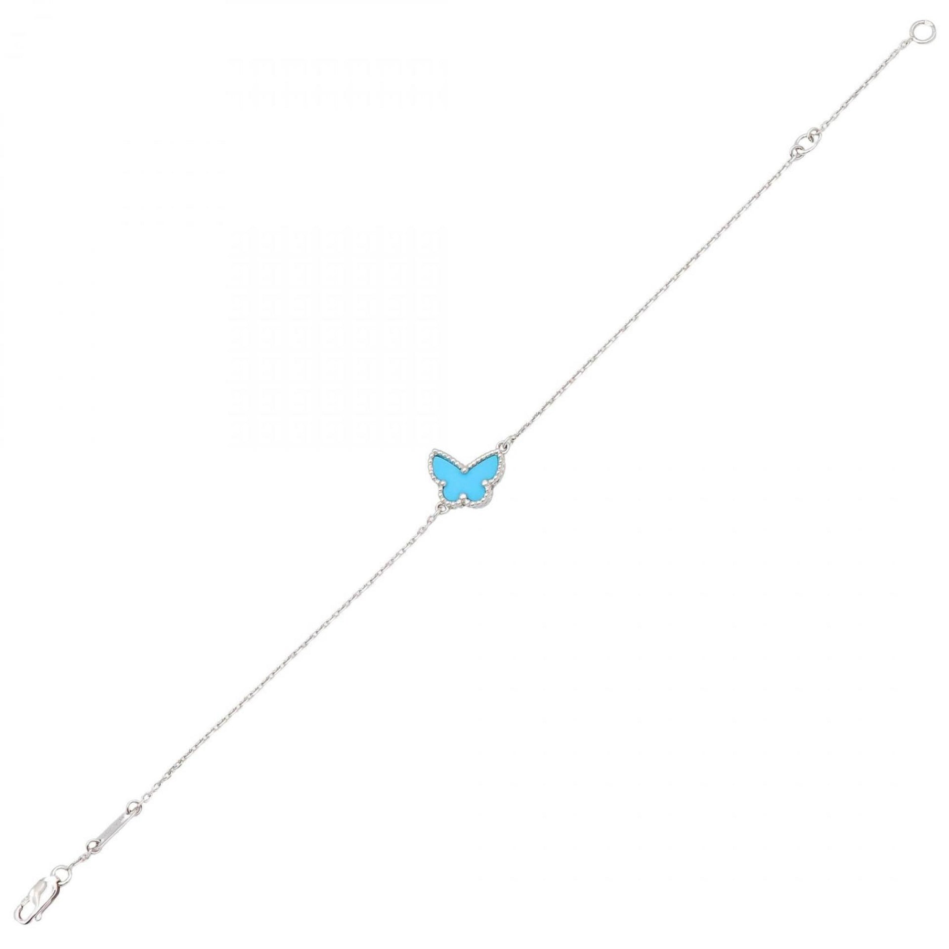 Van Cleef & Arpels Sweet Papillon Turquoise Bracelet, 18K White Gold, Turquoise, Women\'s, Blue, Silver