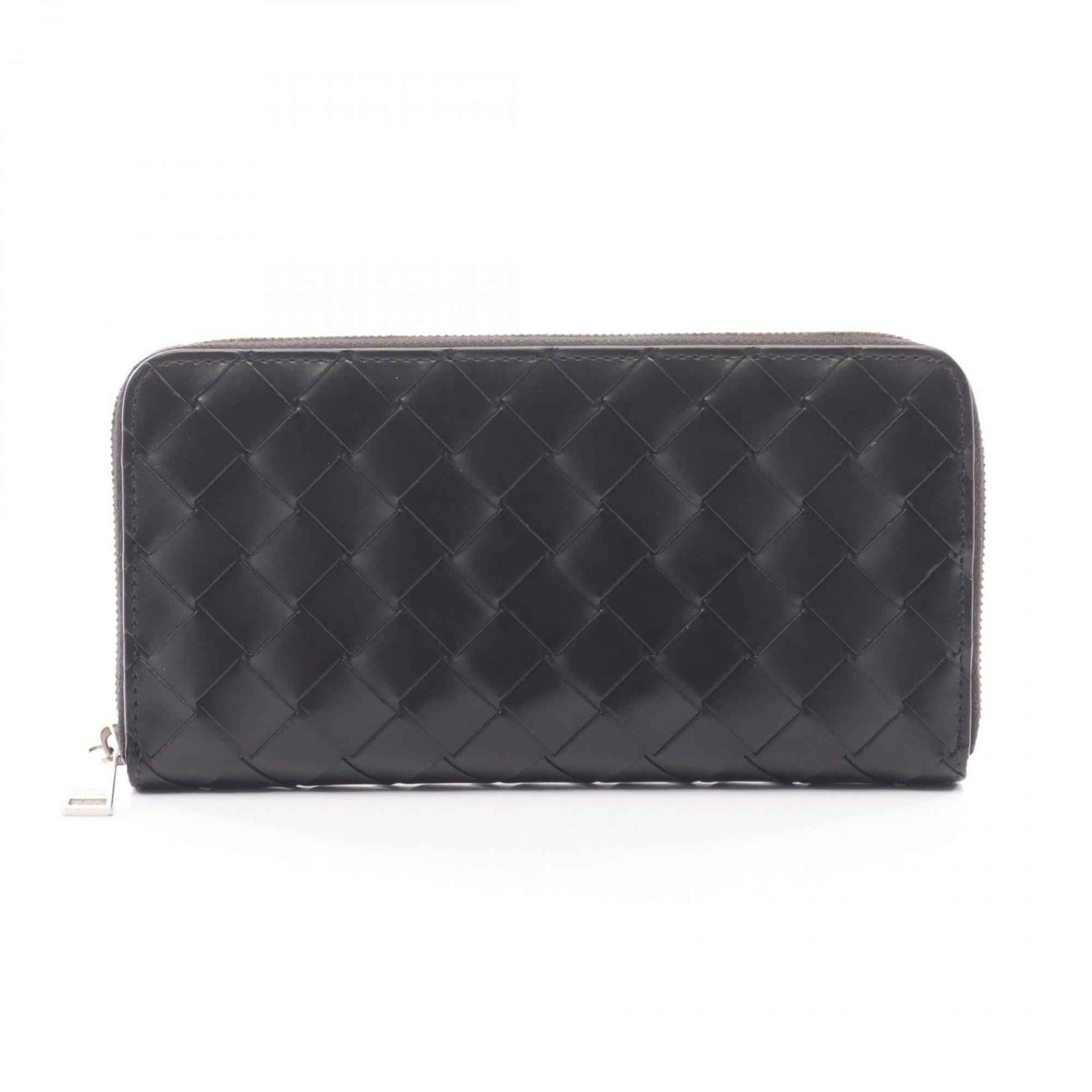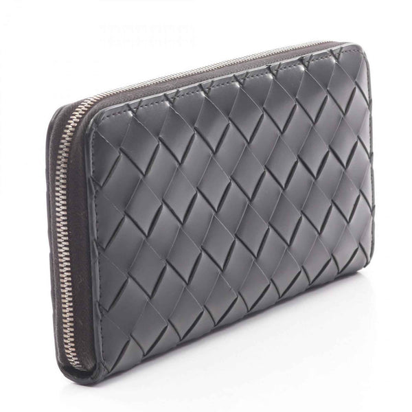 Bottega Veneta Intrecciato round long wallet, leather, men\'s and women\'s, black