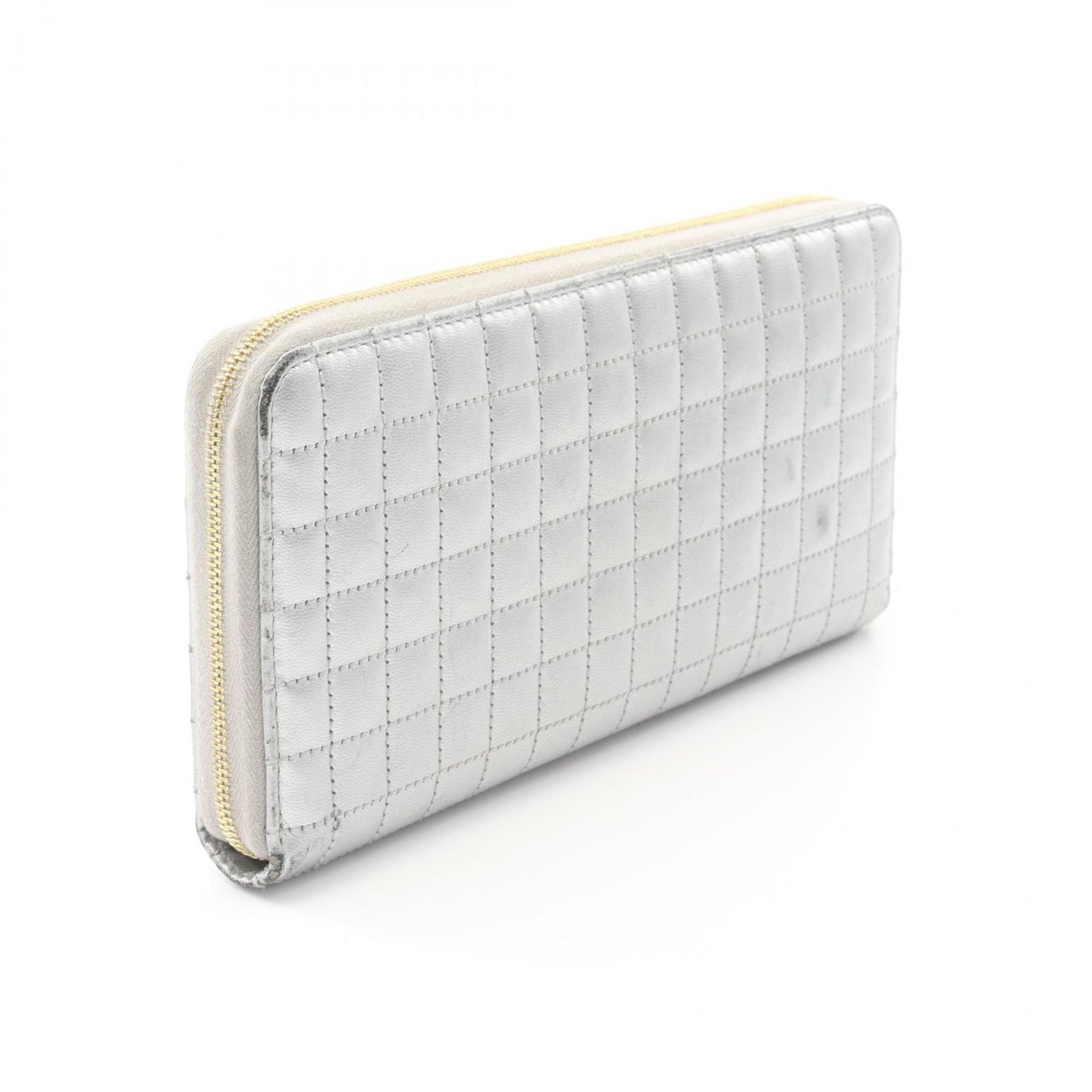 CELINE C Charm Large Zipped Wallet Round Long Leather Women\'s Silver 10B553