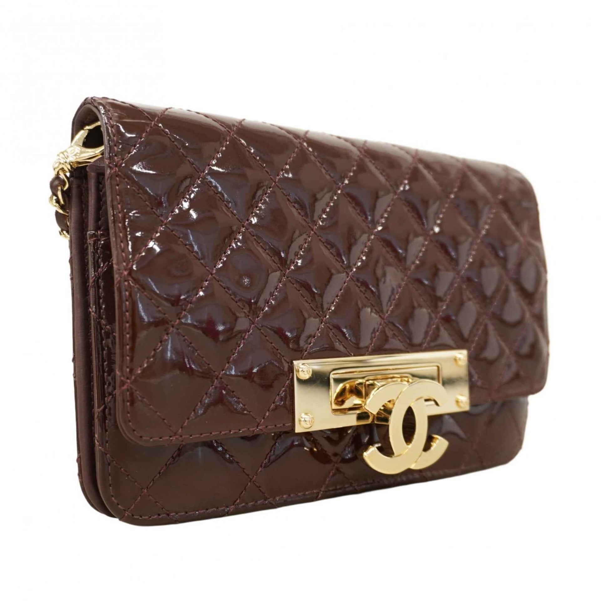 Chanel Matelasse Shoulder Wallet with Chain Strap, Patent Leather, Bordeaux and Champagne, Women\'s