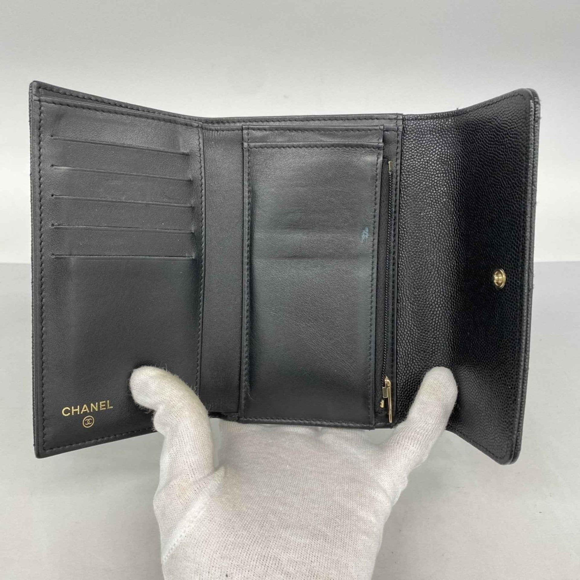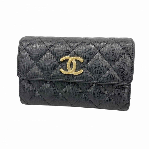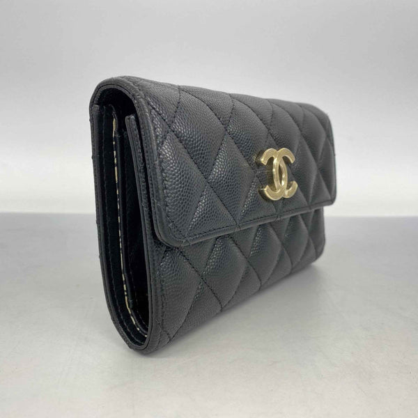 Chanel Matelasse Tri-fold Wallet in Caviar Leather, Black and Champagne, Women\'s